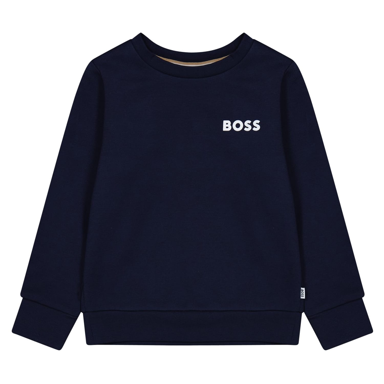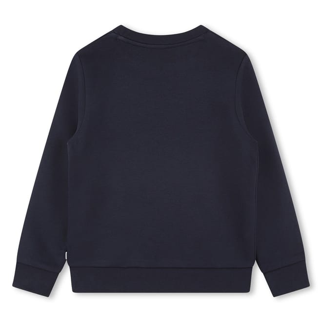 Match with your mini-me with this Logo Sweatshirt from Boss. Crafted from a soft, mid-weight poly-cotton jersey, this sweatshirt styles a crew neck, long sleeves, straight hemline, ribbed trims and includes a delicate fleece lining for ultimate comfort on casual days. Designed in a solid colour block throughout, the look is defined with contrasting logo lettering printed to the chest in addition to a discreet logo tab to the left seam and the brand's signature stripe detailing embellishing the interior collar. Material Composition: Shell: 87% cotton, 13% polyester. Trim: 97% cotton, 3% elastane. Machine washable at 30 degrees. -