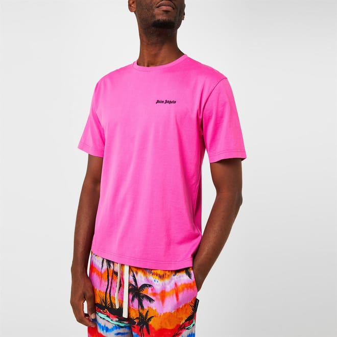 - Made from soft and breathable premium cotton, this short-sleeved t-shirt offers superior comfort that is perfect for all-day wear. Created with a ribbed crew neckline and a slim fit, a timeless and versatile silhouette is provided while maintaining a modern aesthetic. Highlighting the design, this t-shirt features a meticulously embroidered Palm Angels Gothic font logo at the chest, providing instant brand recognition and a touch of luxury exclusivity.