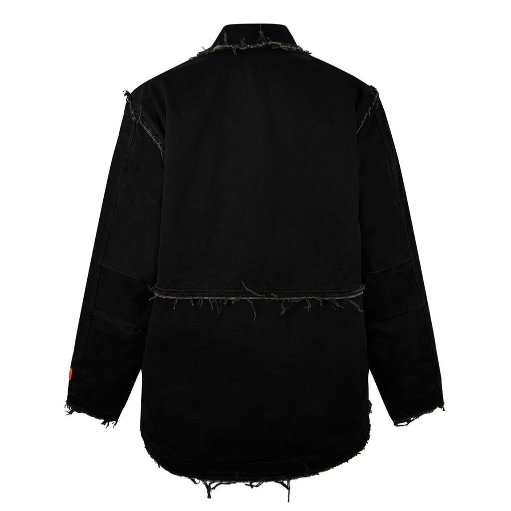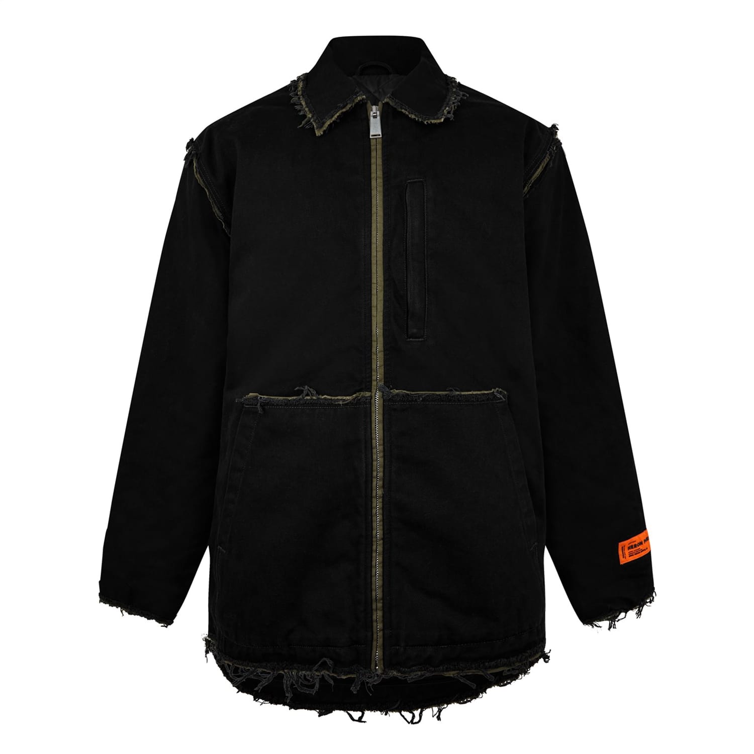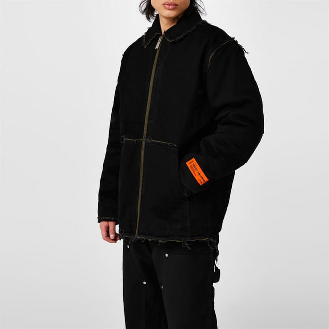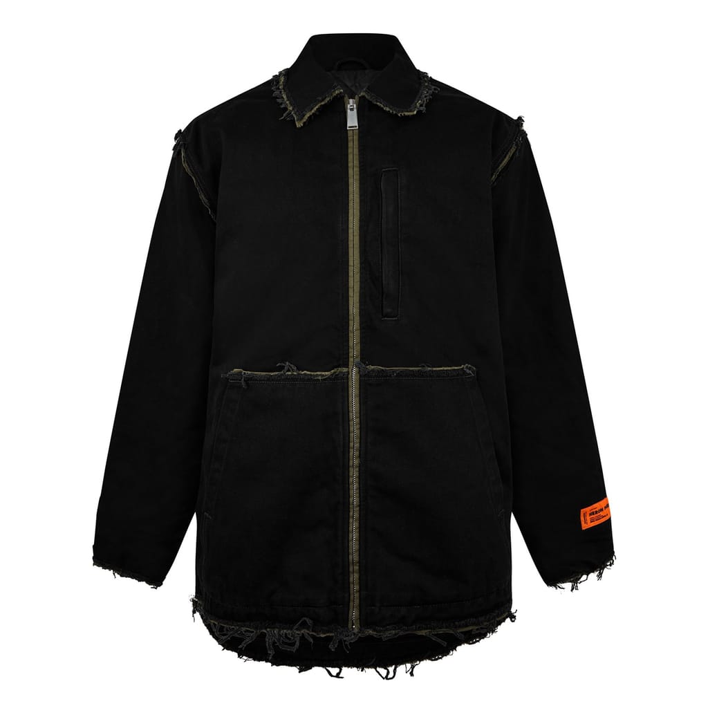 Embrace style and functionality with this Heron Preston cargo jacket. Featuring a zipper closure and a collared neck, this long jacket is designed for a relaxed fit. The solid pattern and logo embellishments add a touch of sophistication, while the curved hemline and practical pockets enhance its utility. Part of the outerwear collection, it's perfect for versatile wear. -