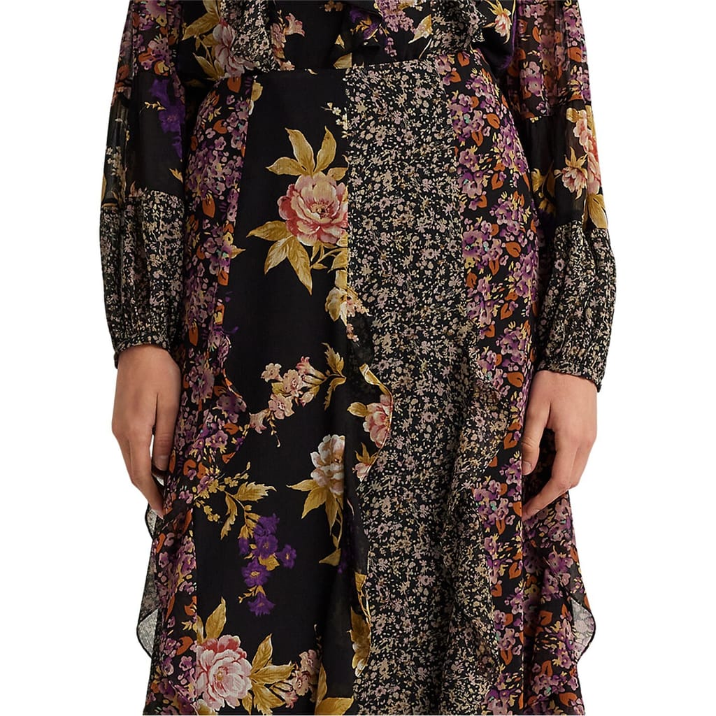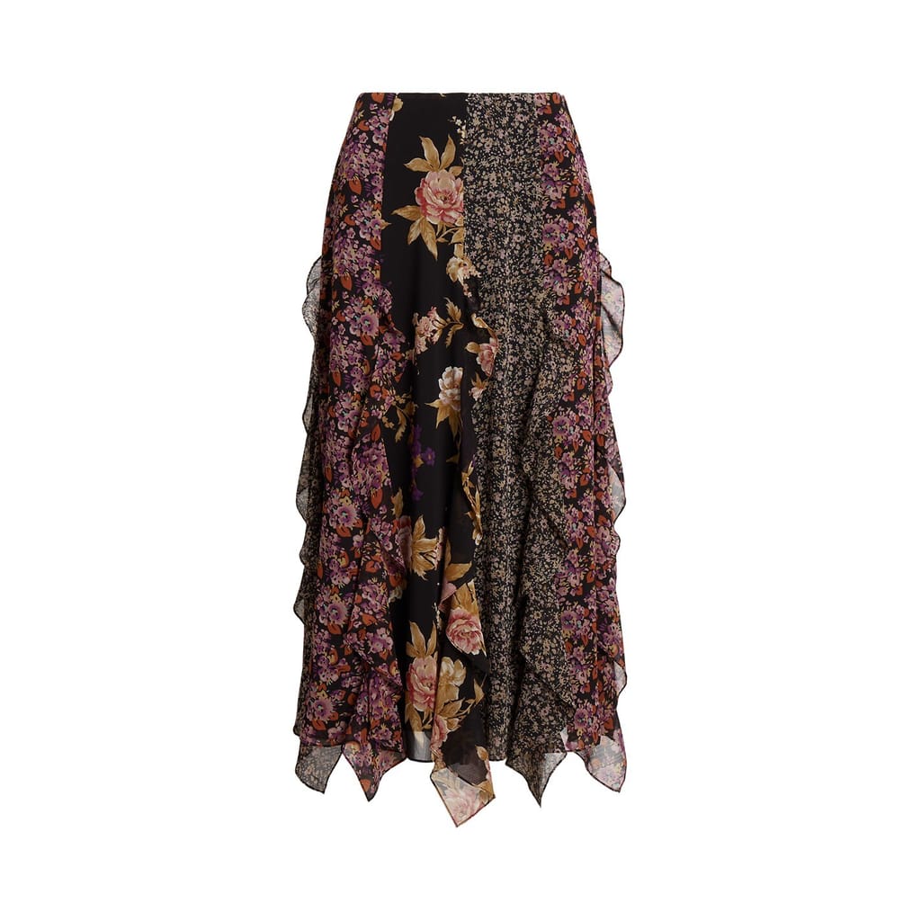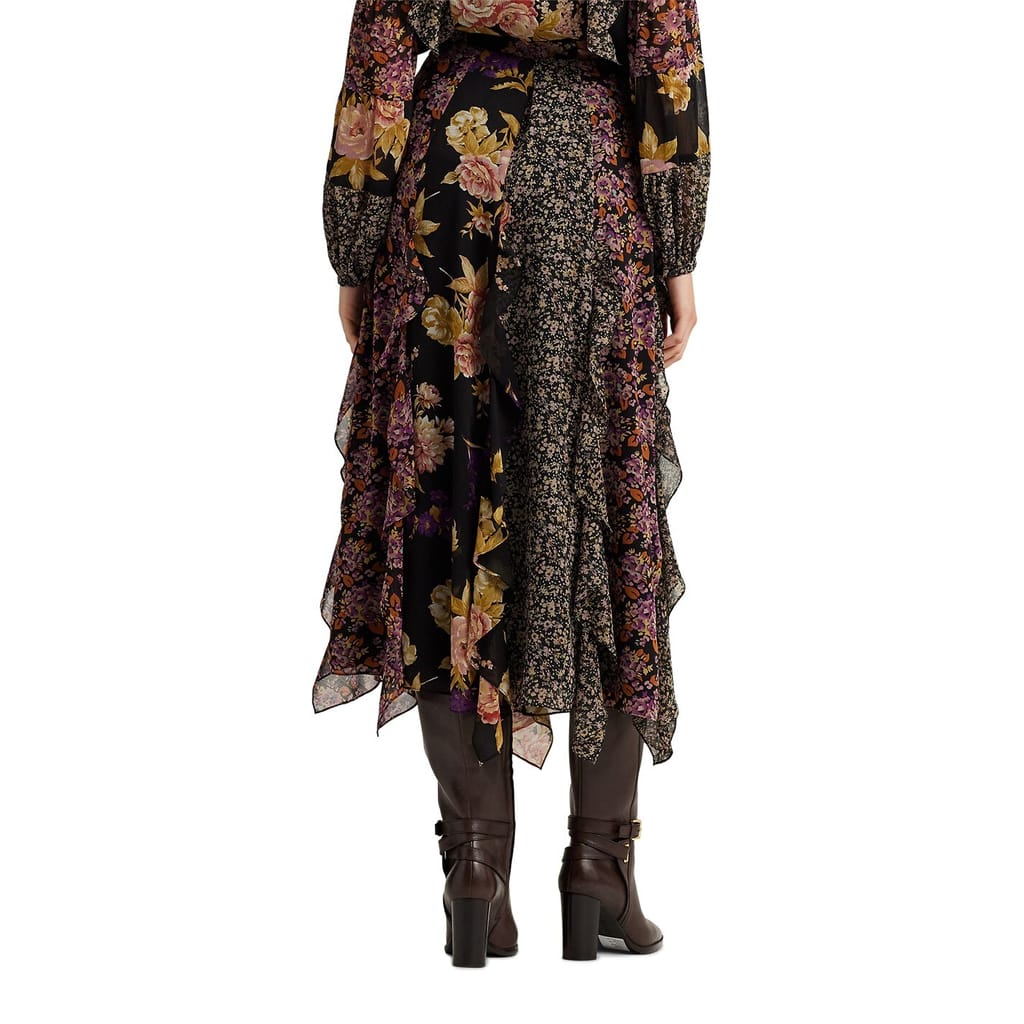 This Lauren by Ralph Lauren Bothany Midi Skirt defies convention and proves that florals aren't just for spring. With its distinct cut-to-an-asymmetric-hem design, the skirt gracefully swishes and flows with each step, exuding an air of effortless style. Expertly crafted from a resilient fabric, this midi skirt not only withstands the test of time but also provides unparalleled comfort and ease of movement. Sitting at the waist, it flatters the silhouette and accentuates your natural curves. Embrace its fashionable, lightweight essence by pairing it with a tucked-in blouse and sleek platform sandals. 100% Polyester. Hand wash only. -