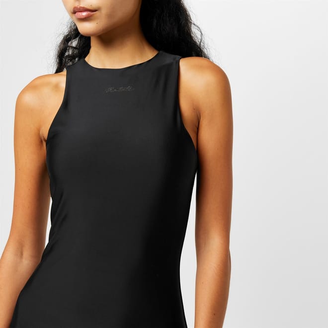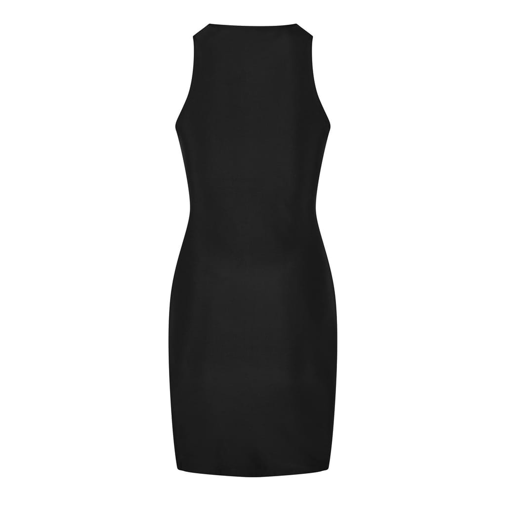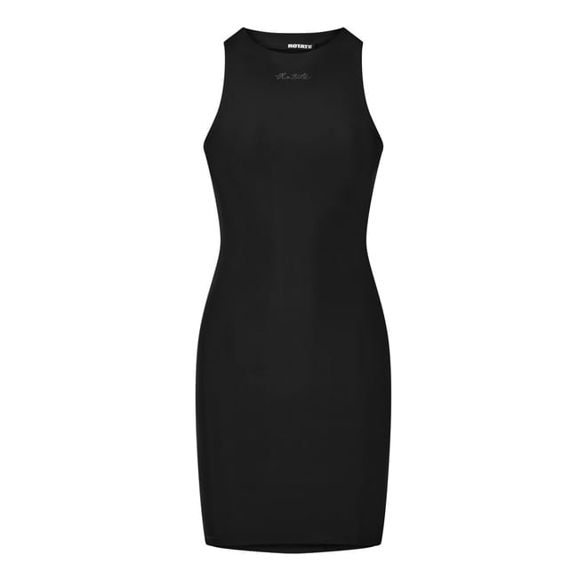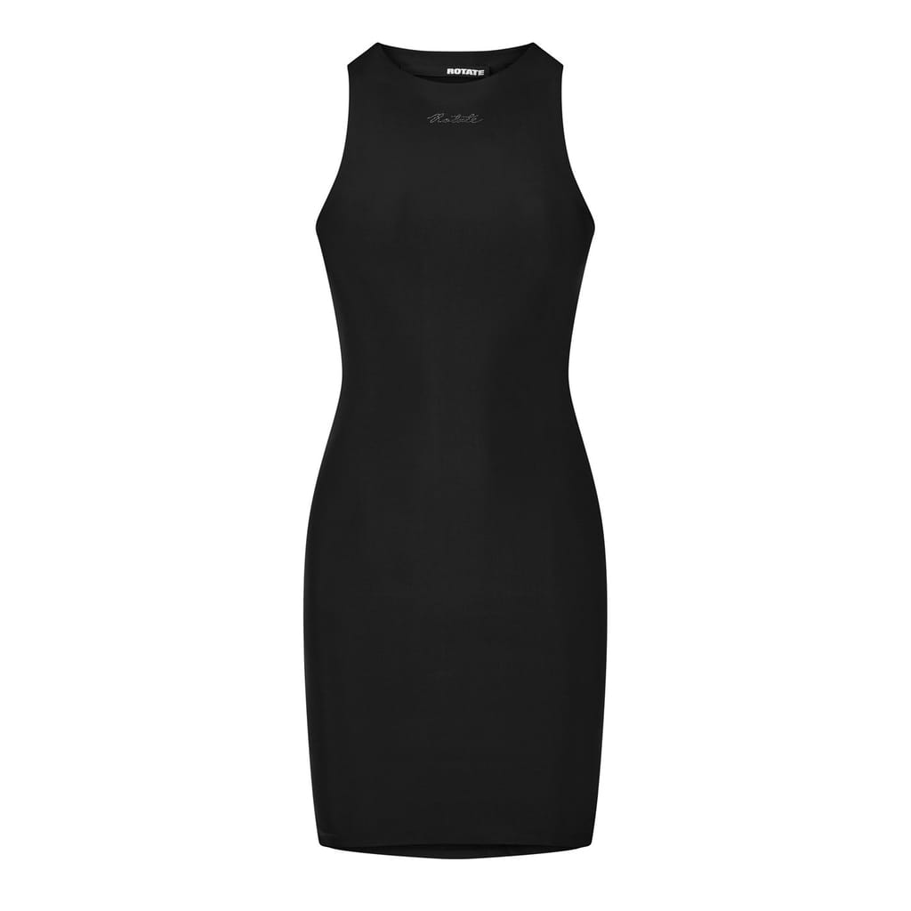 - This sleeveless, fitted and flattering silhouette, will create confidence and charm, enhancing your natural curves. Combined with the mini length and round neckline, it adds a playfulness to the overall look. The racerback further accentuates the shape of the dress, while the pullover design adds an element of ease. The crystal design logo on the chest, complete with the Rotate signature, adds a finishing touch of luxury to this impeccable design. Perfect for evening attire, whether it's for a luxurious cocktail party or a formal dinner. The dress can be taken to the next level by pairing it with some black cowboy boots. The Talla Mini Dress by Rotate is more than just a dress; it's an investment that speaks volumes of class and sophistication. Be bold, and make a statement by adding this sensational dress to your collection. Composition: 80% Polyamide, 20% Elastane. Care: Hand wash only. -