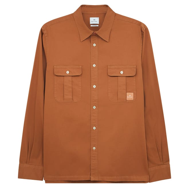 This PS Paul Smith shirt features a collared neckline and long sleeves with cuffed ends. Crafted from solid fabric, it boasts a regular fit and shirt collar. Embellished with a logo and pocket, this utility shirt is perfect for all seasons. The button-down closure and straight hemline add a touch of classic style. -