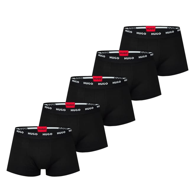 Upgrade your underwear collection with the Hugo Boss 5 Pack Boxer Shorts Mens. Made from a stretch cotton for a breathable and comfortable feel, these iconic trunks are completed with the brands logo repetitively stitched to the waistband for a show of brand loyalty. -