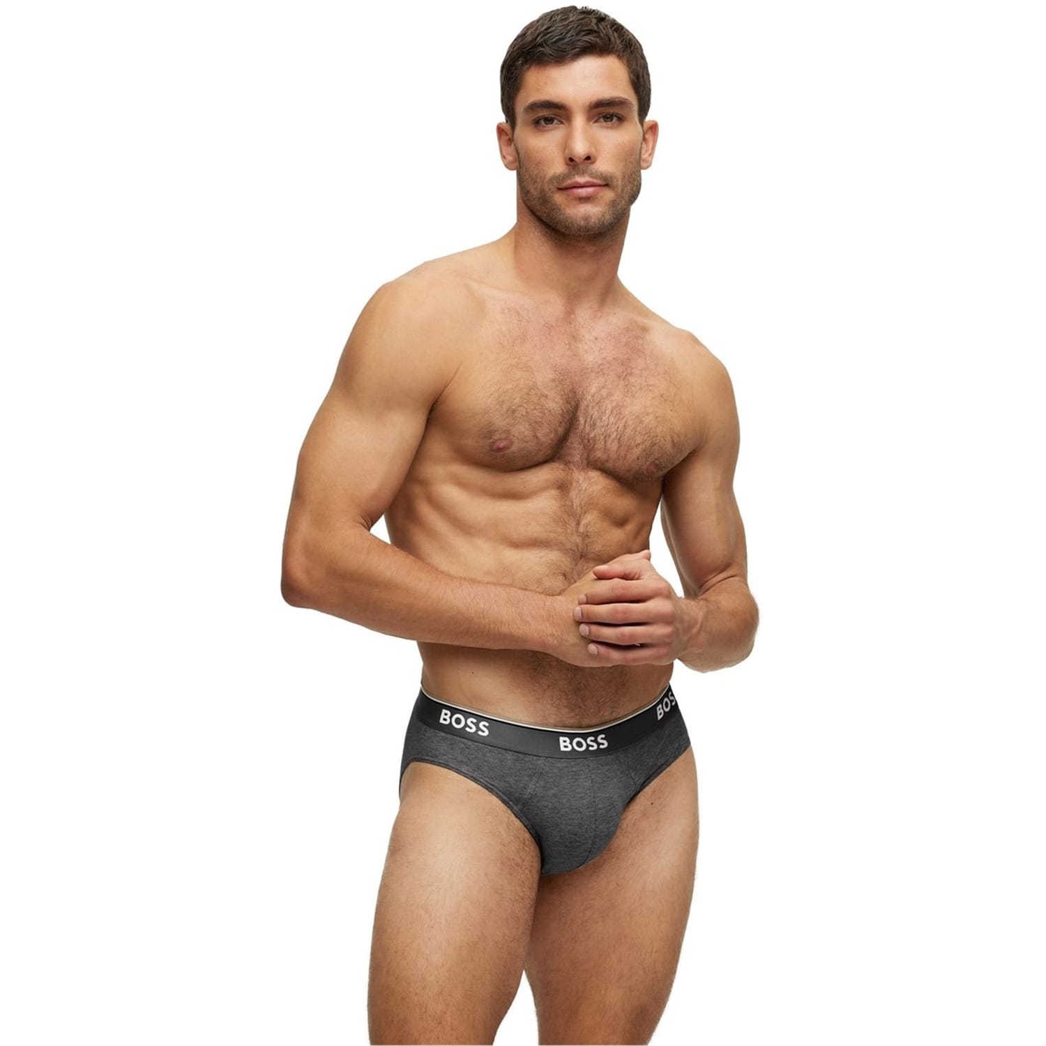 Crafted from a soft cotton fabrication, this 3 pack of briefs are defined with a staple block colourway for a minimal appeal while the exposed regular rise waistband offers Boss repeated branding to the elasticated panel for a designer stamp. With tonal stitching to the pouch for added support and comfort, this pair are perfect for everyday styling. -