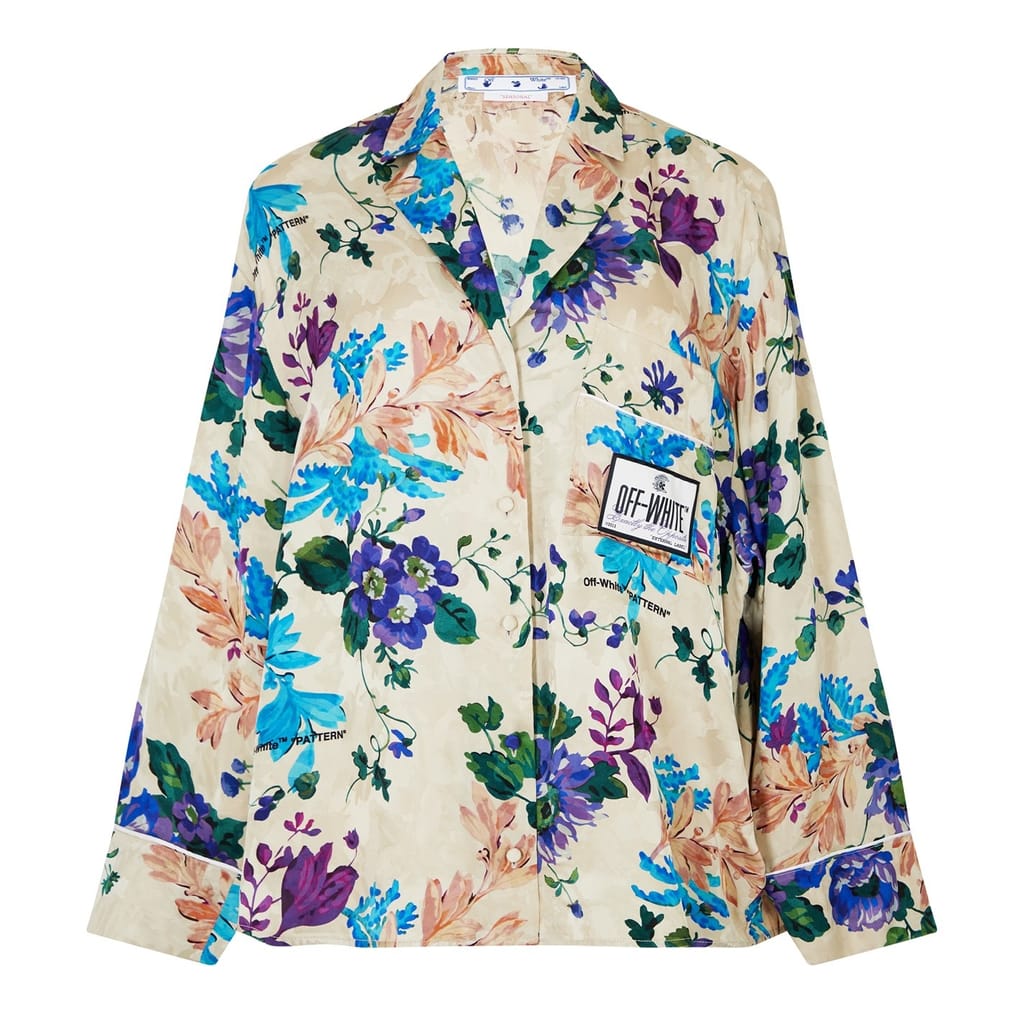 Slumber in style in this luxurious Off White Pyjama shirt. Dream deeply in this supple feel, adroitly crafted from 100% viscose for a satin feel that washes over your frame for comfortable wearing, exuding relaxation ideal for when you begin to wind down. Sleep soundly in this feminine feel, designed in an all over floral print for an elegant appeal. Offering long sleeves, button down fastening and dropped shoulders this piece achieves a slouchy look whilst the chest pocket adds a touch of functionality.Punctuated by the logo patch on the pocket for a prestigious finish. Dry Clean Only.