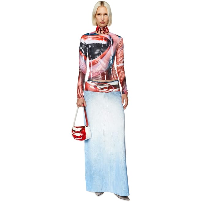 Elevate your autumn and winter wardrobe with this Diesel graphic print long sleeve t-shirt. Crafted for a slim fit, this top features a classic crew neck, perfect for casual and sporty occasions. The bold design reflects Diesel's signature style, making it a standout piece for the season. -