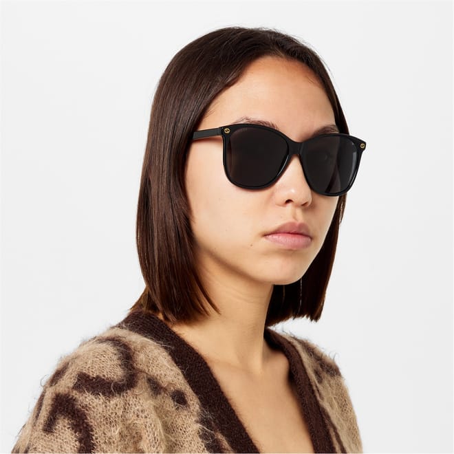 - Iconic interlocking G monogram and signature bee motif: proudly adorn the sunglasses for a stamp of luxury exclusivity.