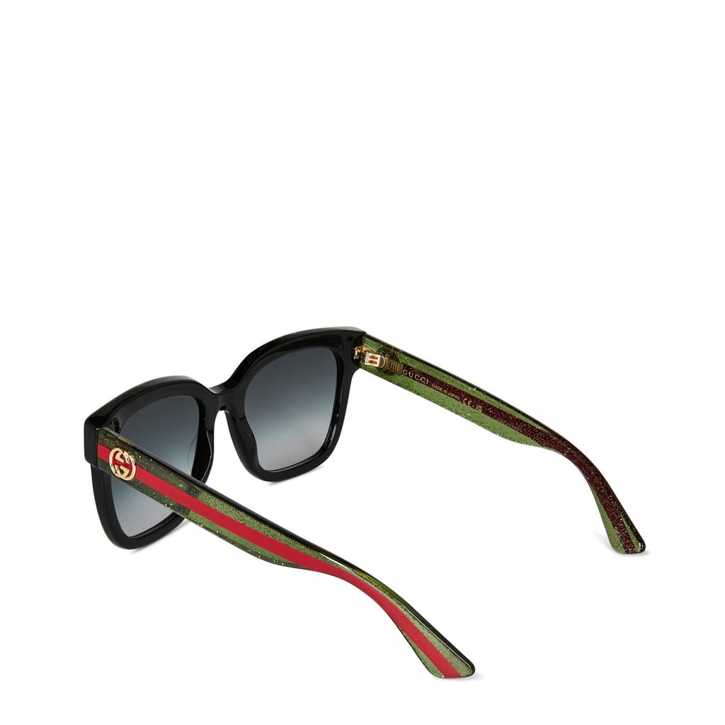 - Interlocking G hardware on the temples provides immediate designer recognition.