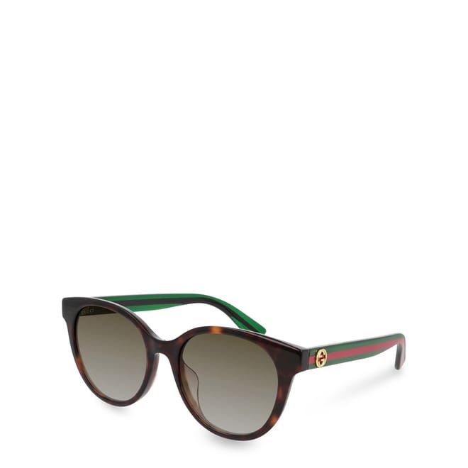 Discover Gucci sunglasses, a perfect blend of style and functionality. These oval eyewear pieces feature a full rim design crafted from durable plastic and acetate materials. The single bridge adds to the sleek look, while the striped pattern and monogram logo embellishments enhance their casual appeal. Equipped with 100% UV protection, they are ideal for all seasons. -