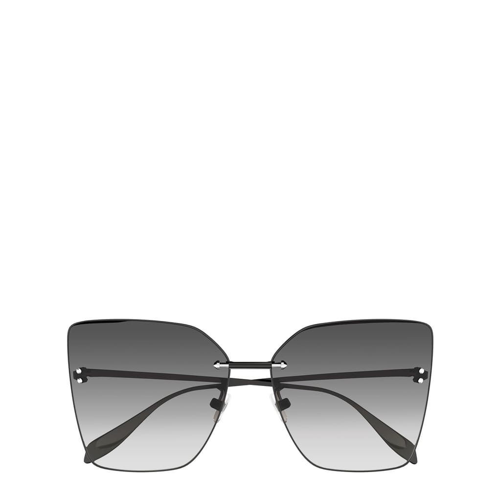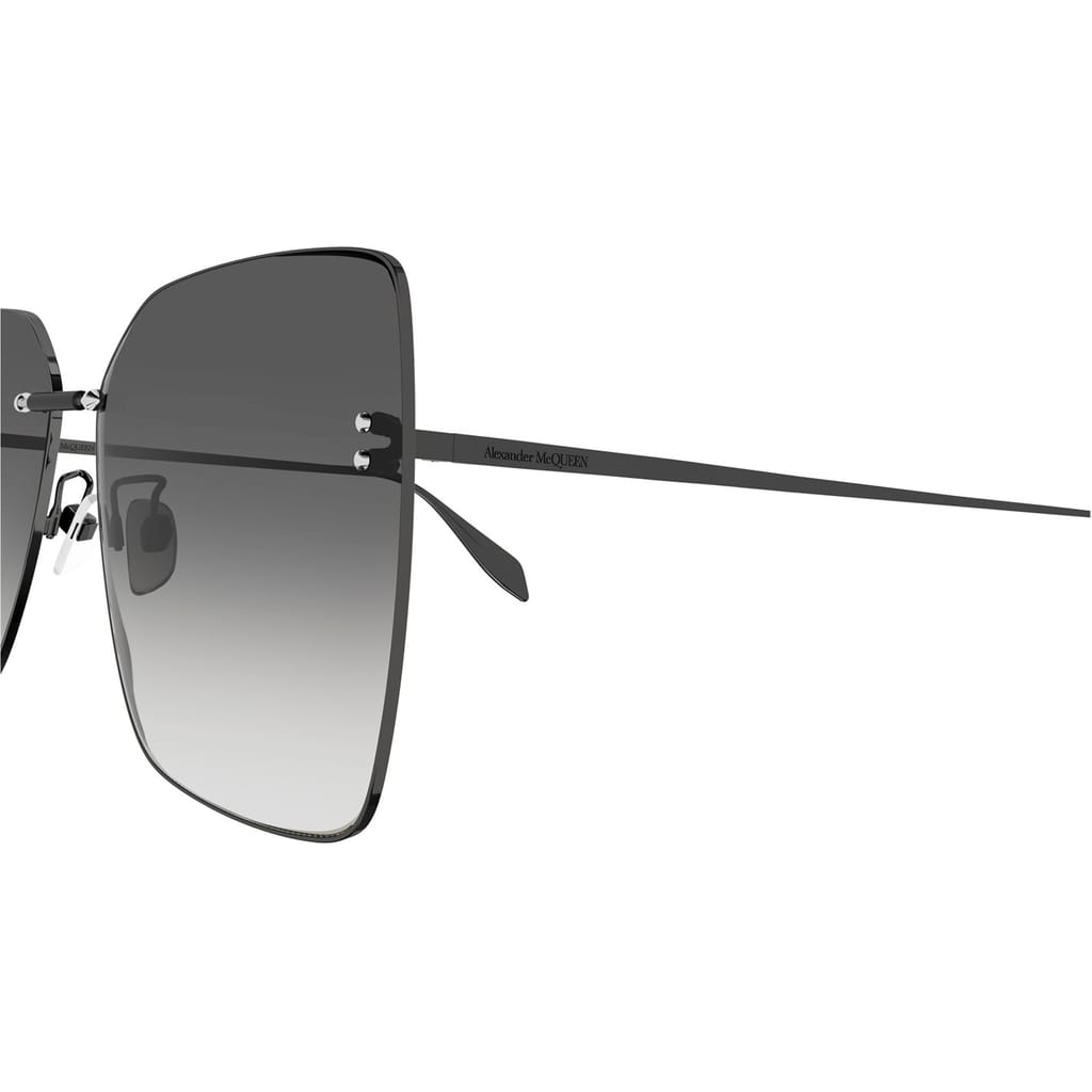 The AM0342S sunglasses from Alexander McQueen style a retro aesthetic with an oversized butterfly frame fitted with gradient UV protective lenses and a central nose bridge all held from a thin metal for a lightweight feel. Alexander McQueen finishes the bold look with discreet branding with the official logo engraved to the temple for a designer touch. Branded case and wipe cloth included.