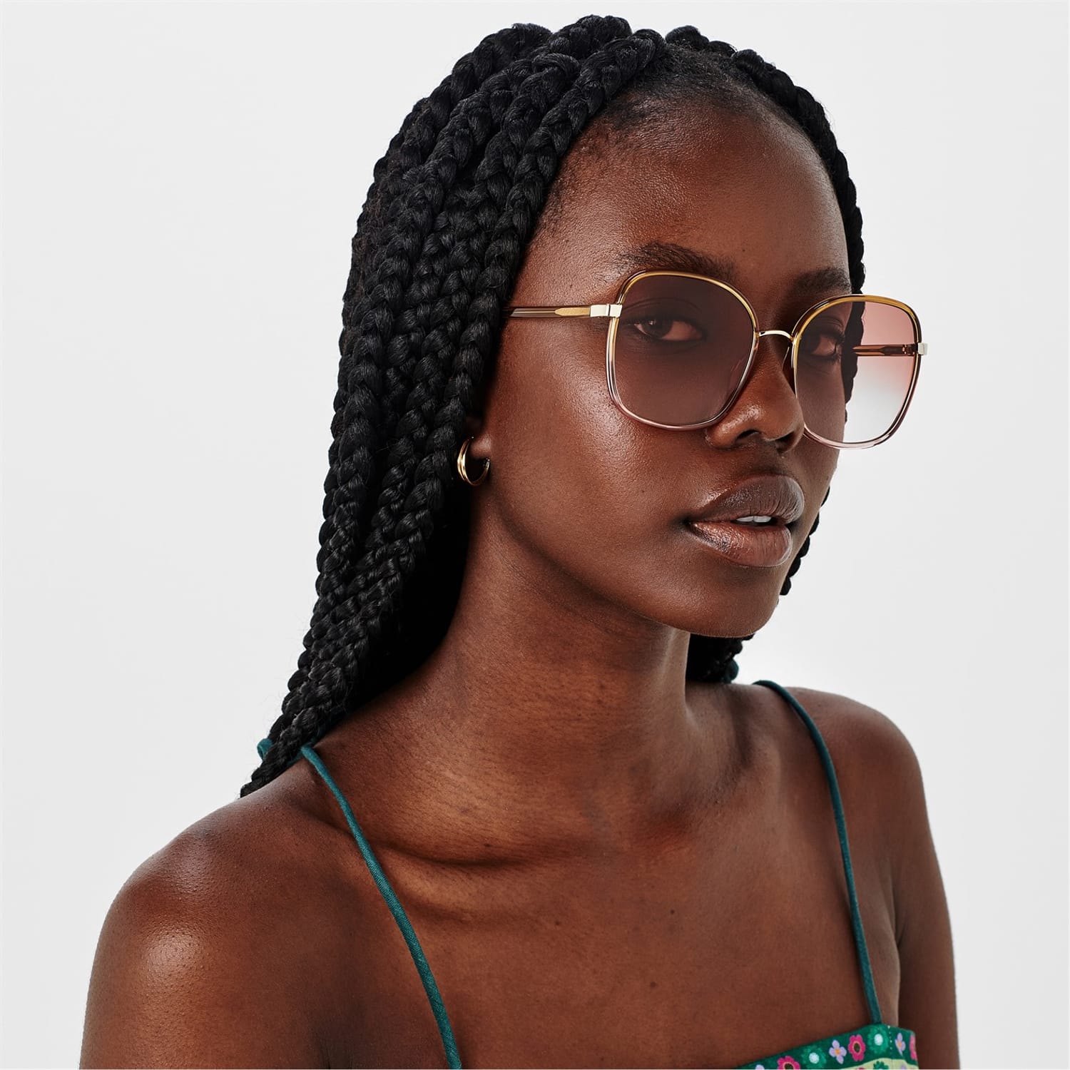 Refresh your summer accessories with the Franky Sunglasses by Chloe. Crafted with bio-based material along with gold metal detail, A gradient petrol to nude tint to the lenses along with the classic Chloe branding to the temple completes the look, complete with a lens cloth and case.