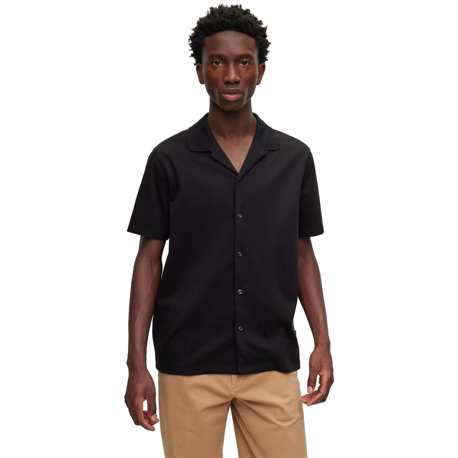 Elevate your semi-formal wardrobe with this Boss polo shirt. Featuring a classic polo collar and short sleeves, this relaxed-fit top offers both comfort and style. The solid pattern and button closure add a touch of sophistication, making it a versatile addition to any collection. -