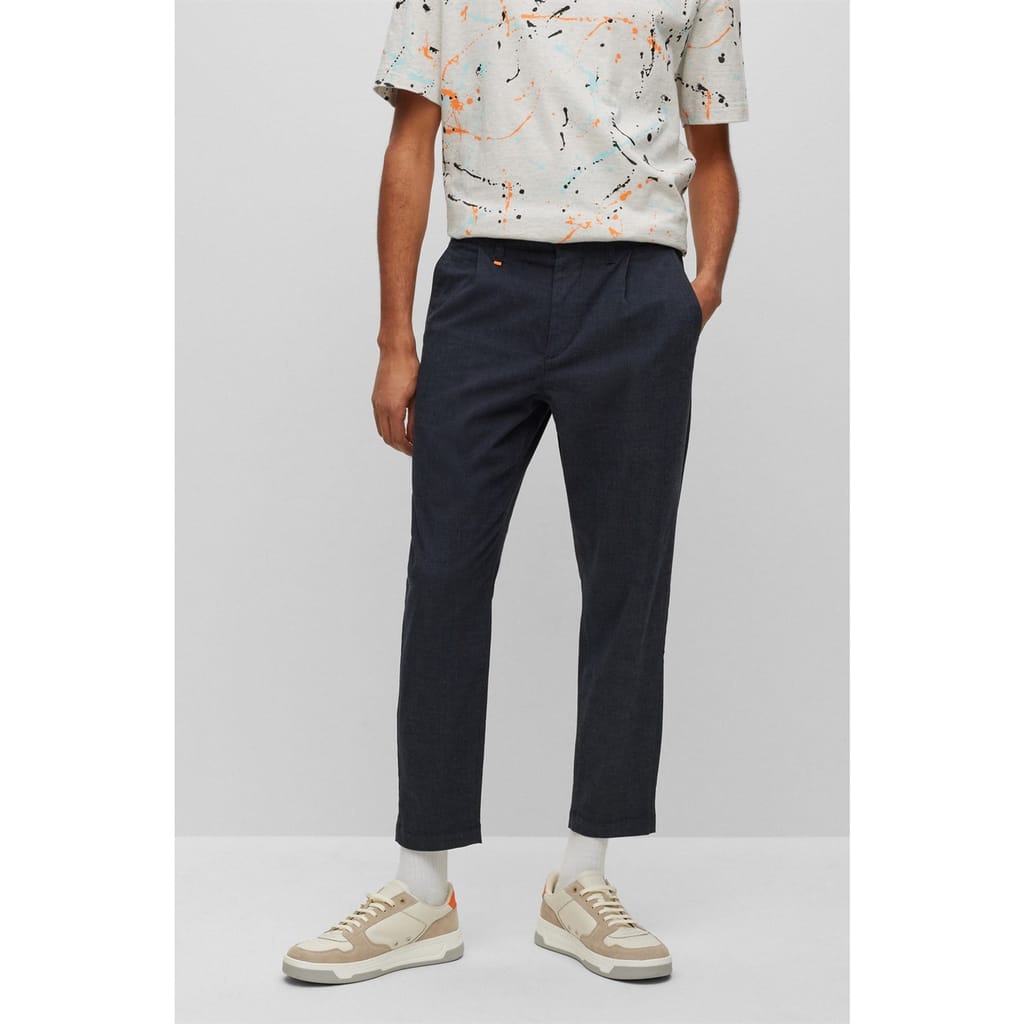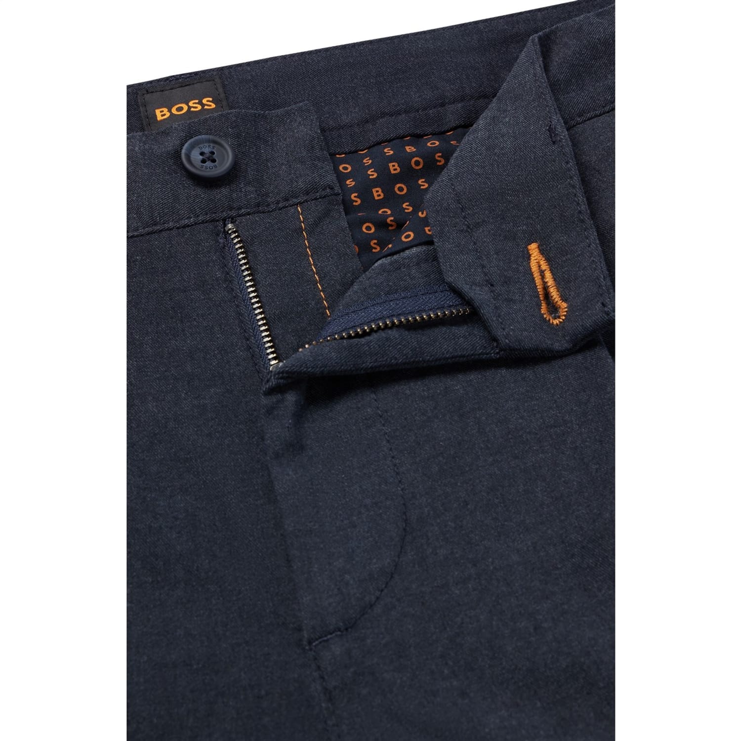 Elevate your business wear with these Chino Schino Taber Black Trousers by Boss. Expertly made from a soft cotton blend, creating a breathable lightweight appeal that enhances your comfort with this soft feel whilst its suave edge elevates your everyday ensemble. Blending functionality with sophistication these trousers boast two front slit pockets, a zip closure and back pockets. In a sleek black shade, these tailored slim-fit trousers exude an air of understated refinement lending themselves effortlessly to various occasions, be it a formal gathering or a casual outing.