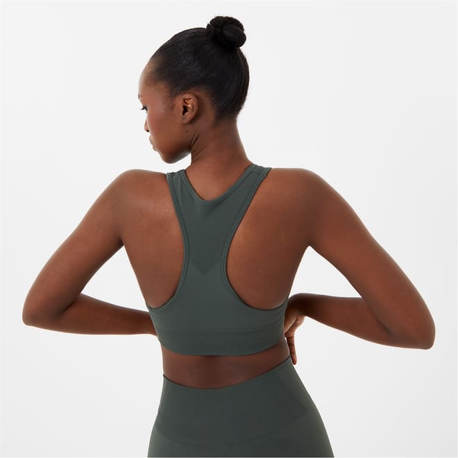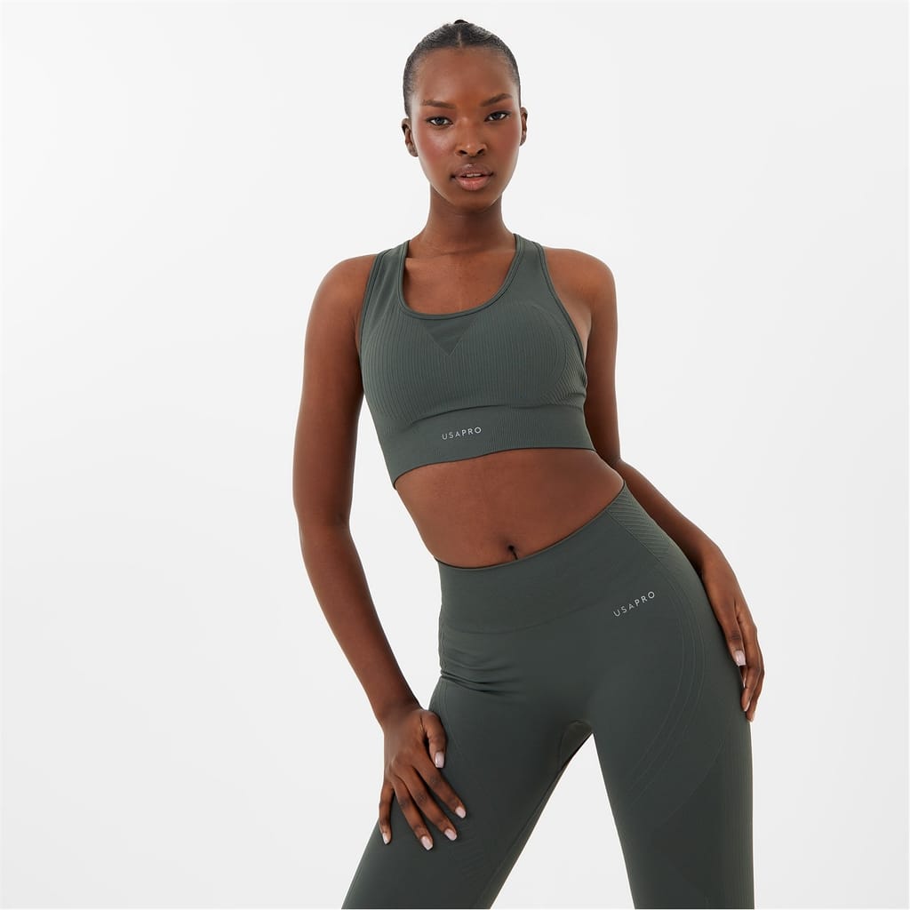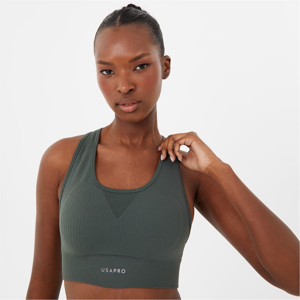 - Crafted from a blend of Nylon and Elastane for a stretchy fit, this cropped silhouette offers ultimate comfort during those intense workouts. With seamless technology to ensure an irritation-free experience no matter your yoga position, the removable cups provide customisable support and shape, catering to your individual needs. Designed with the Pro Dry technology, this bra effectively wicks away sweat, keeping you dry and comfortable during intense workouts. Cut in a racer-back silhouette for additional support, the scoop neckline provides freedom of movement while the USA Pro branding to the elasticated band showcases your dedication to performance and style.
