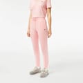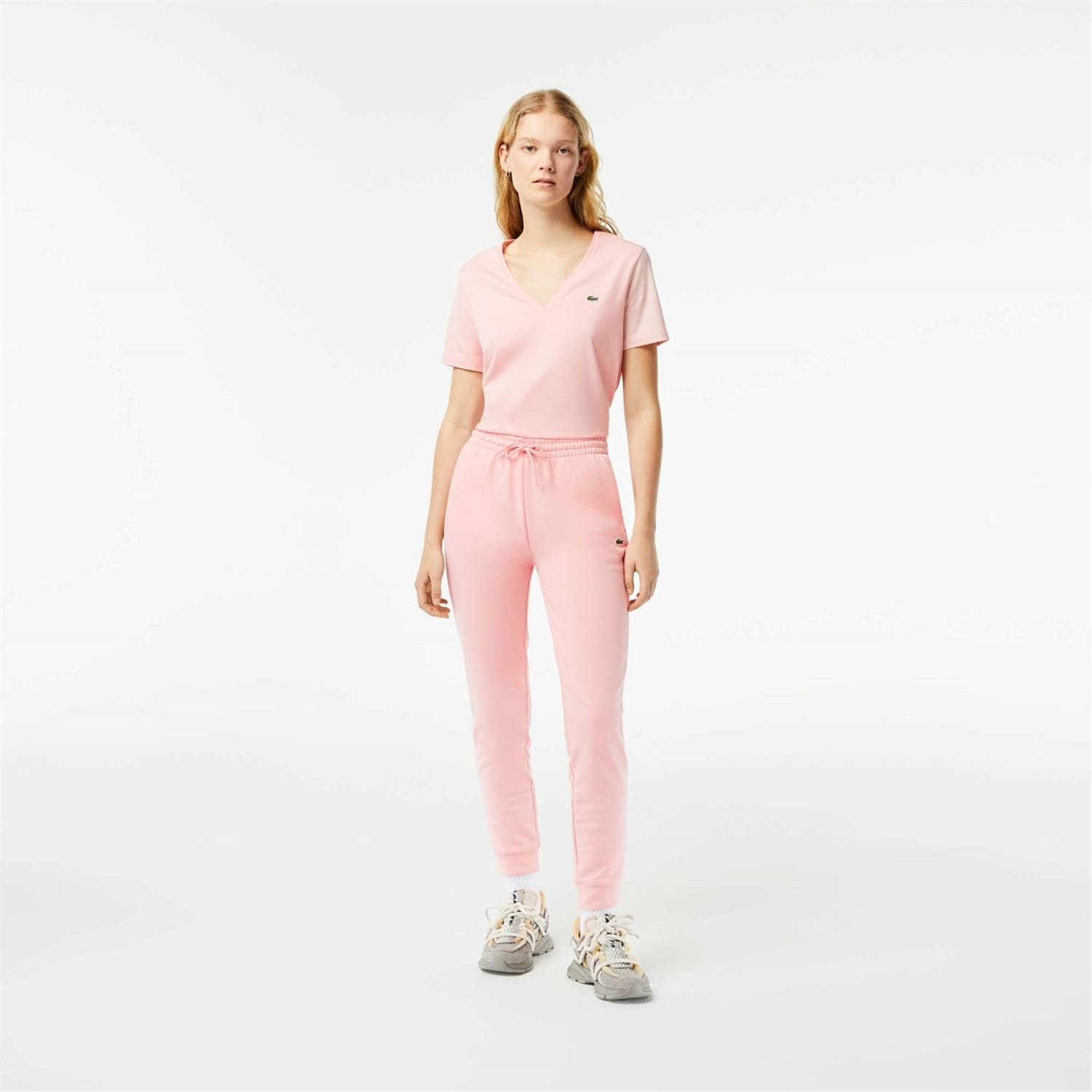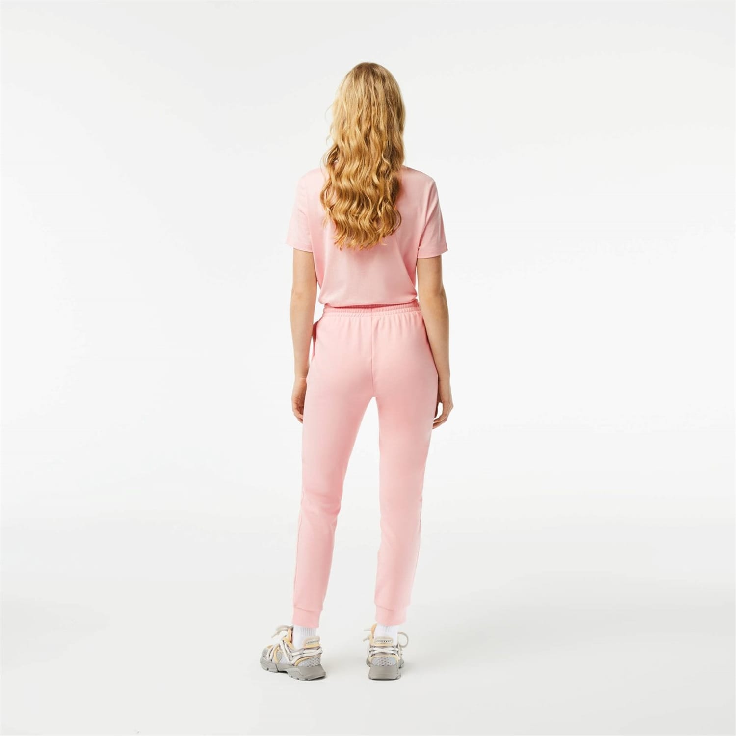Add comfort and a touch of colour to your bottom wear with these fashionable Fleece Joggers from Lacoste. Crafted in a mix of cotton and polyester this pair come in a regular waisted, unbrushed fleece, jogging bottom fabrication. Highlighting a elasticated waistline with drawstring fastener to ensure a secure and comfortable fitting. Ribbing to the cuffs allow a more secure fit, the pair are finished in a solid block pink colouring which exudes femininity, completed with the signature croc logo to the side for a stylish finish. This pair are perfect for relaxing and a great addition to any casual outfit. Garment Care: Machine wash 30 degrees, do not bleach, do not tumble dry, iron maximum 150 degrees, do not dry clean.