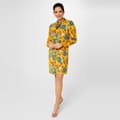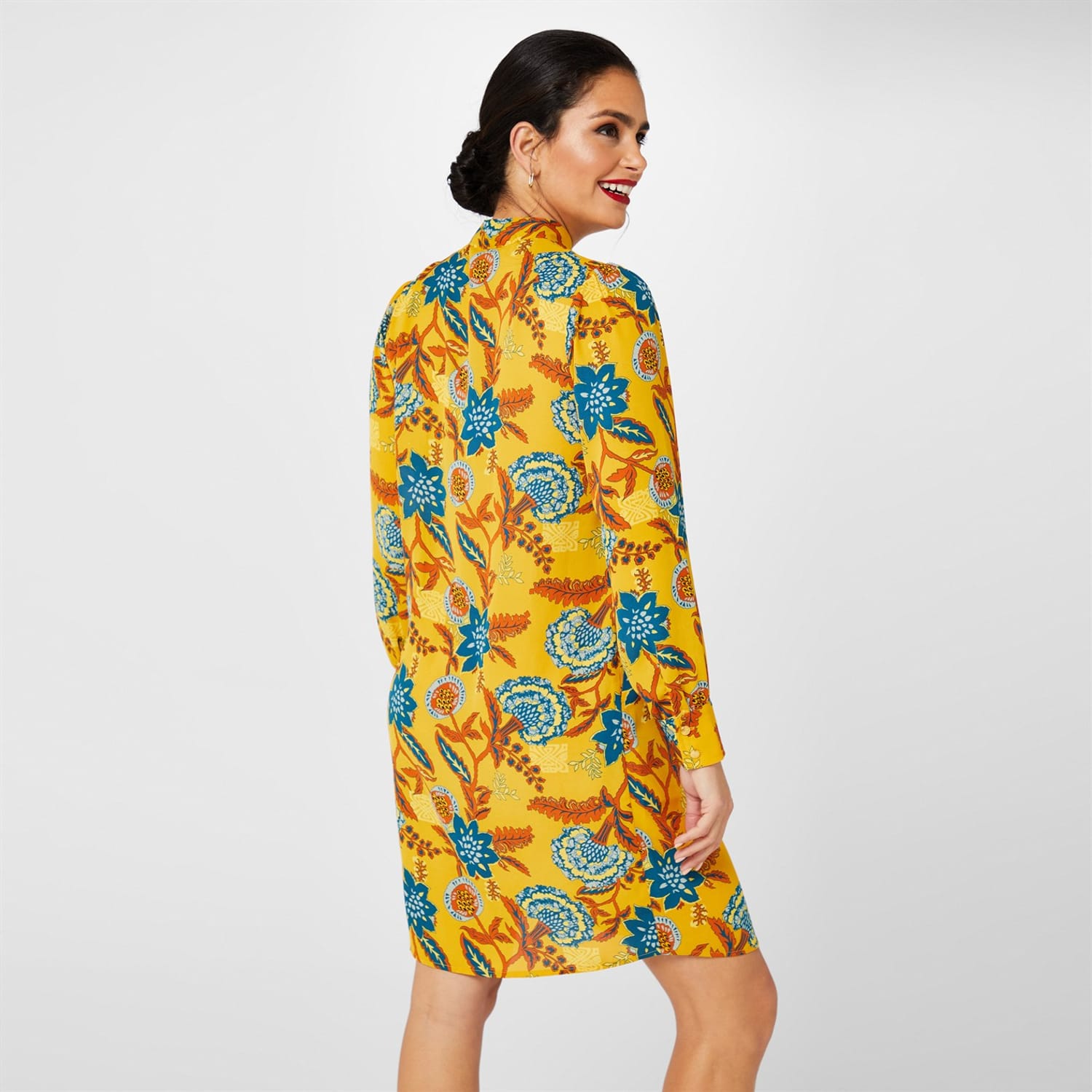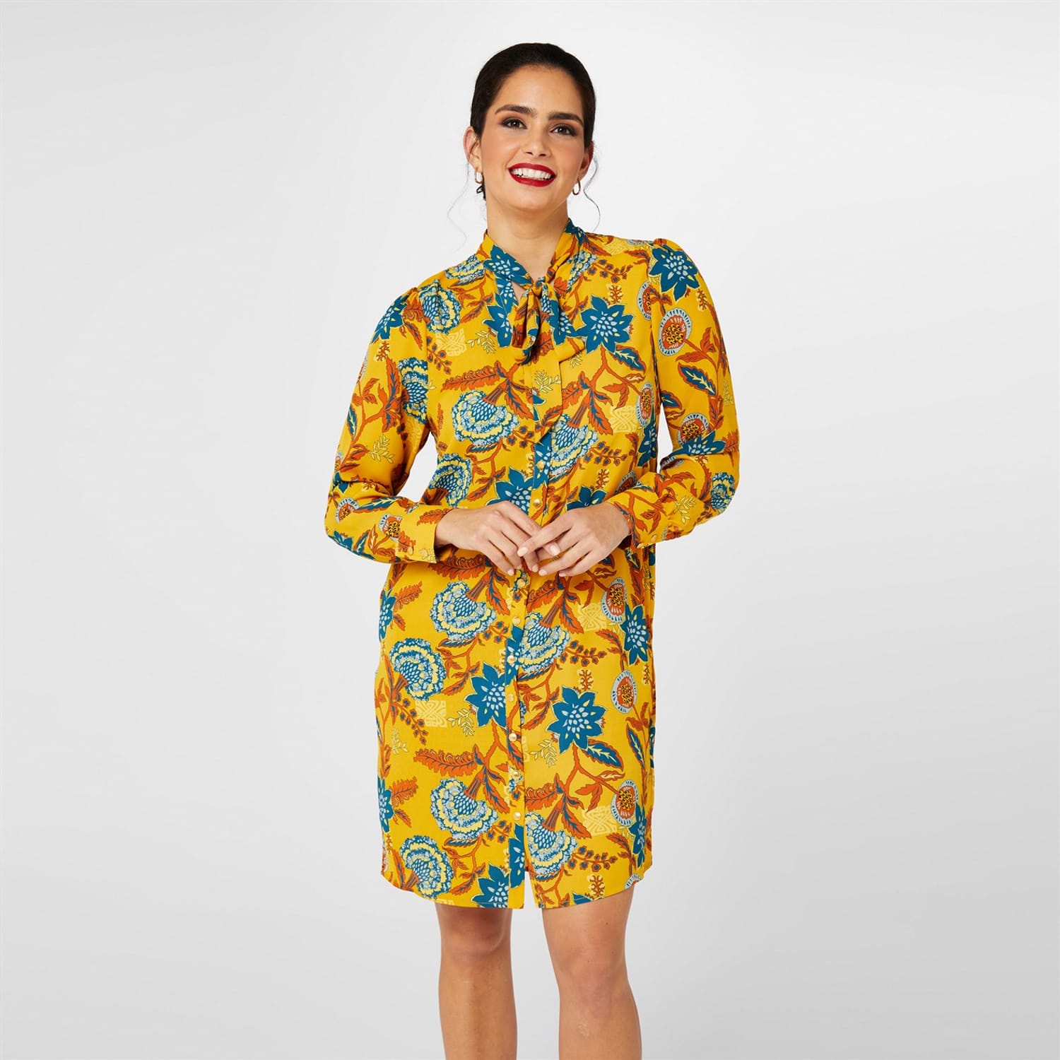 This Biba tunic dress features a knee-length design adorned with a floral pattern. It includes a tie neck for added elegance and long sleeves for a classic look. The regular fit ensures comfortable wear, making it a stylish choice for various occasions. -