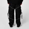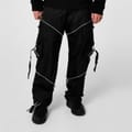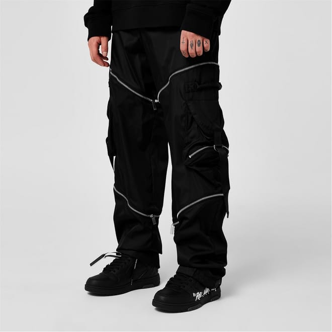-These Zipped Cargo Trousers expertly demonstrate the brand's signature DNA, adroitly constructed in high-quality nylon and infused with industrial elements. Cut for a loose fit, this thoroughly modern mid-rise silhouette features belt loops to the waist accentuated with metallic hardware and an exposed zip fly for a secure fit. Four welt pockets to the front and back accompany two stylised zipped cargo pockets with web straps, providing ample space for all your on-the-go essentials. Zipped detailing to each leg provides further industrial touches, and snap-fastened cuffs offer adjustable comfort. Discreet tone-on-tone stitching concludes the