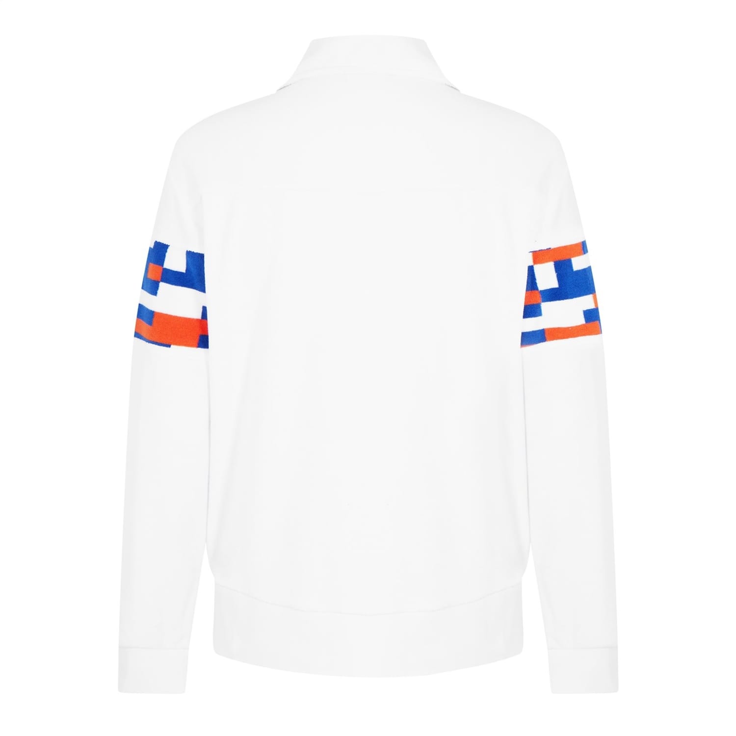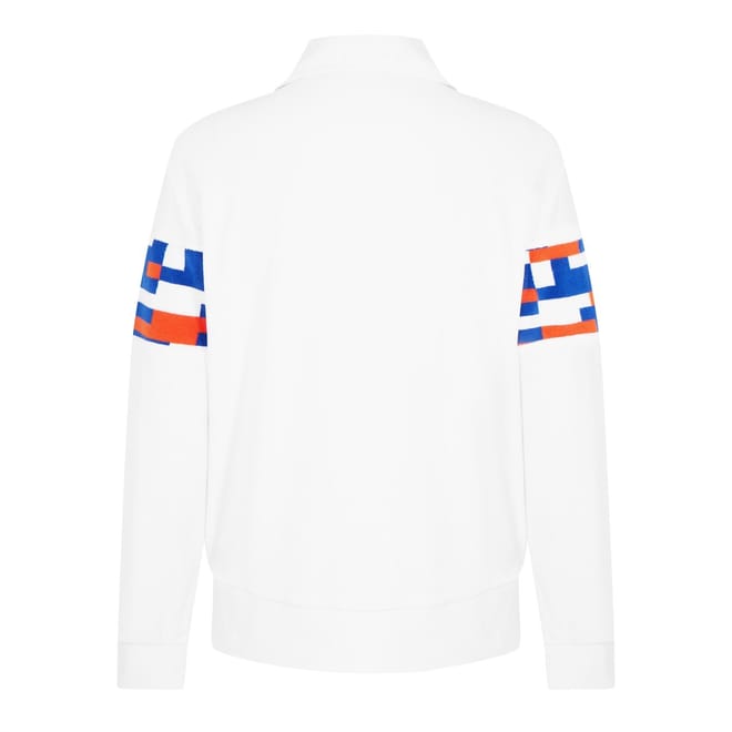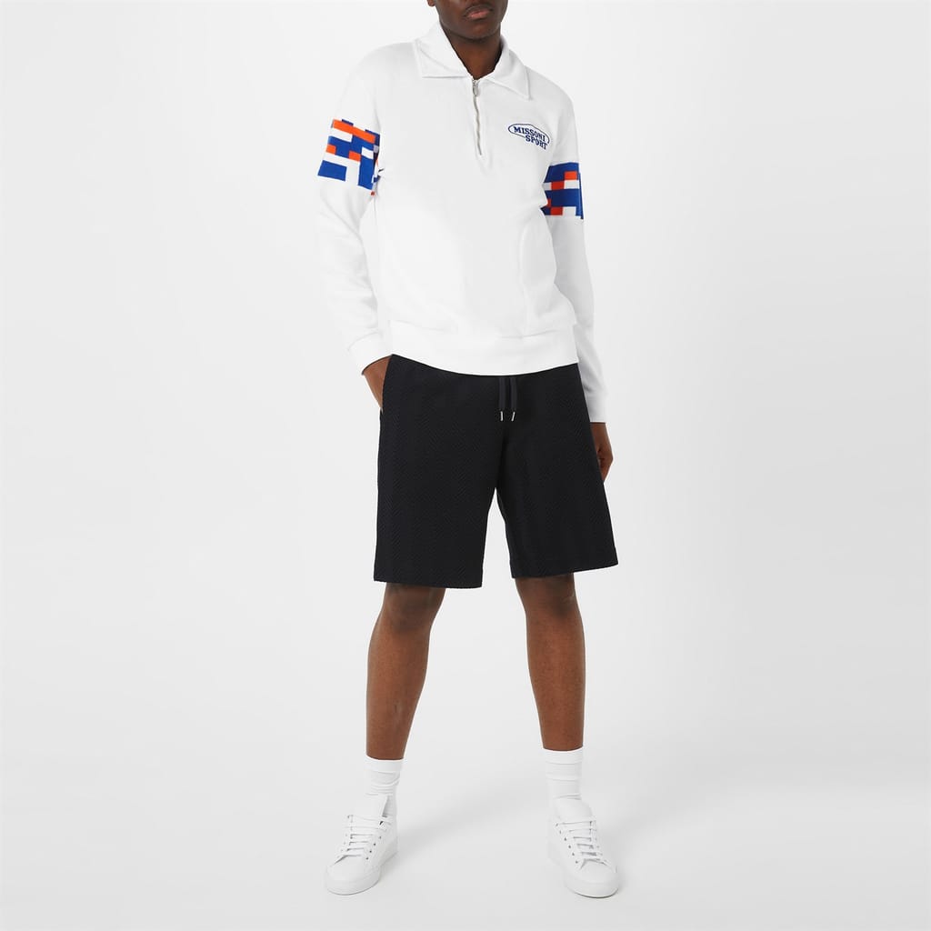 Missoni sweatshirt featuring a zip neck and long sleeves. This regular fit top showcases a stylish color block pattern and a ribbed cuff for added comfort. Embellished with a logo, it combines classic design with a modern twist. -