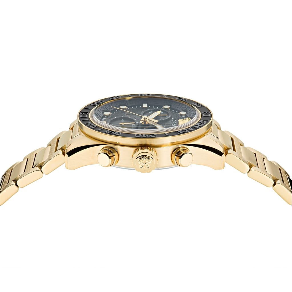 Versace Greca Dome - Chrono VE6K00523 is an amazing and very impressive Gents watch. Case material is Stainless Steel while the dial colour is Black. This model has got 50 metres water resistancy - it can be submerged in water for periods, so can be used for swimming and fishing. It is not recommended for high impact water sports. We ship it with an original box and a guarantee from the manufacturer -