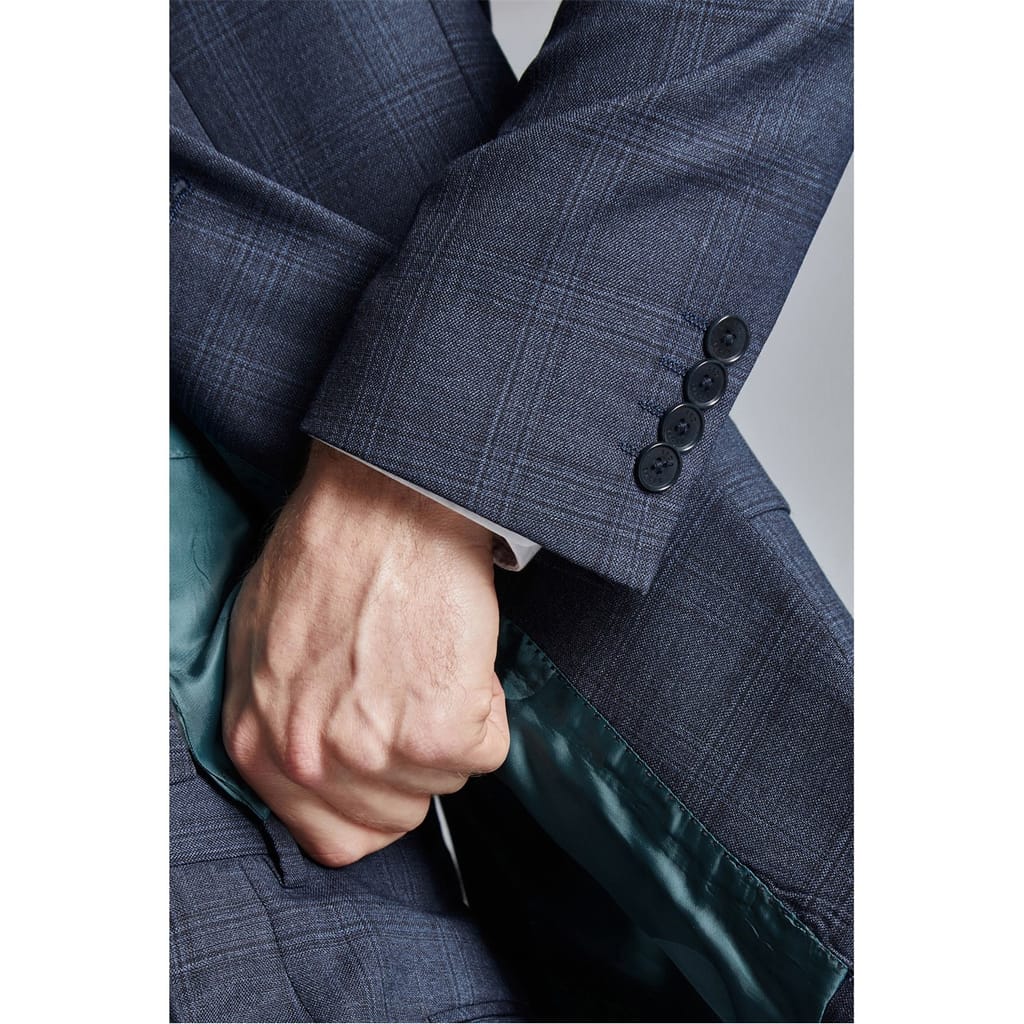 This Ted Baker suit jacket from the outerwear collection features a slim fit and a plaid pattern. Crafted with a long length and a button closure, it includes practical pockets. The notched neckline adds a classic touch, while the straight hem complements the overall design. Perfect for a refined, tailored look. -