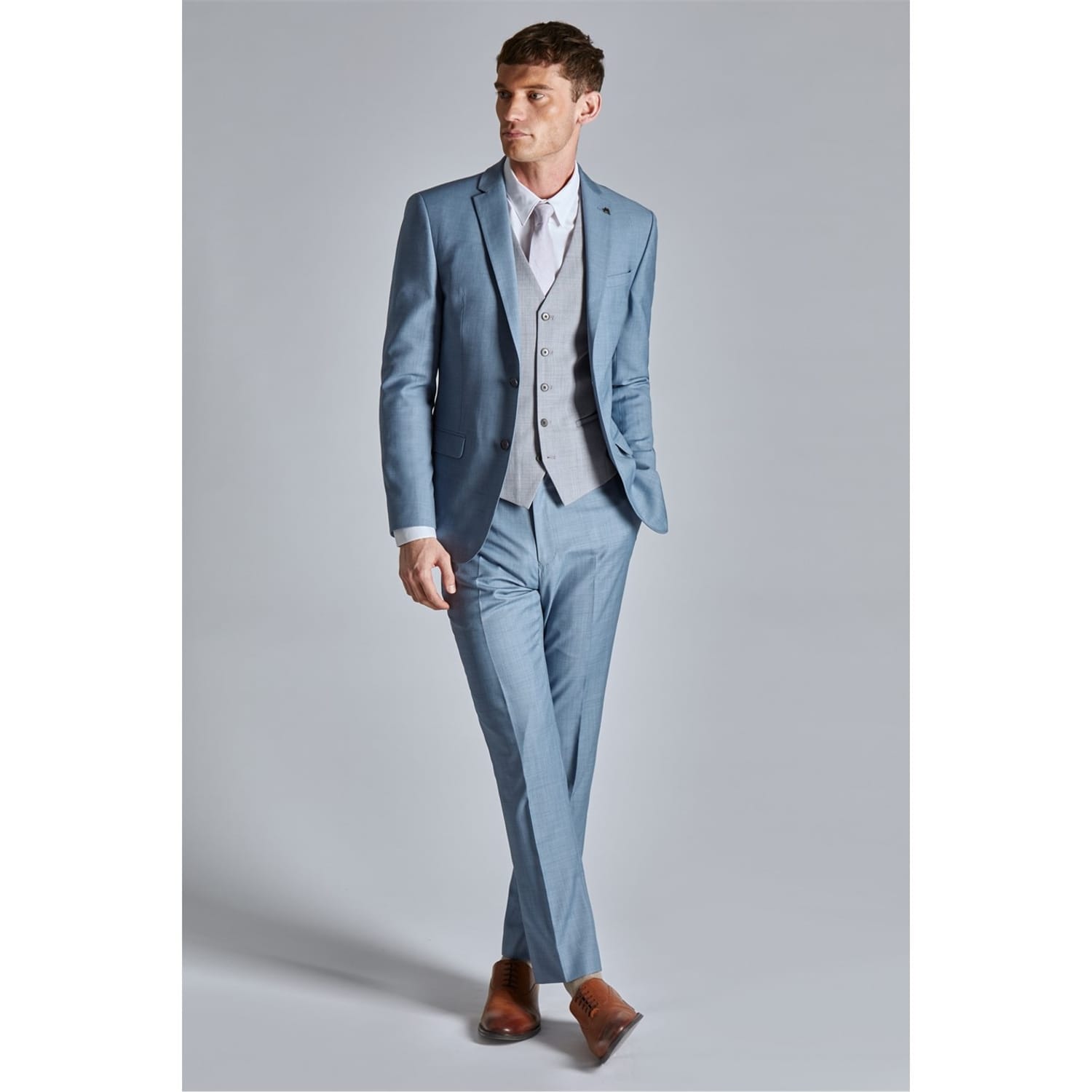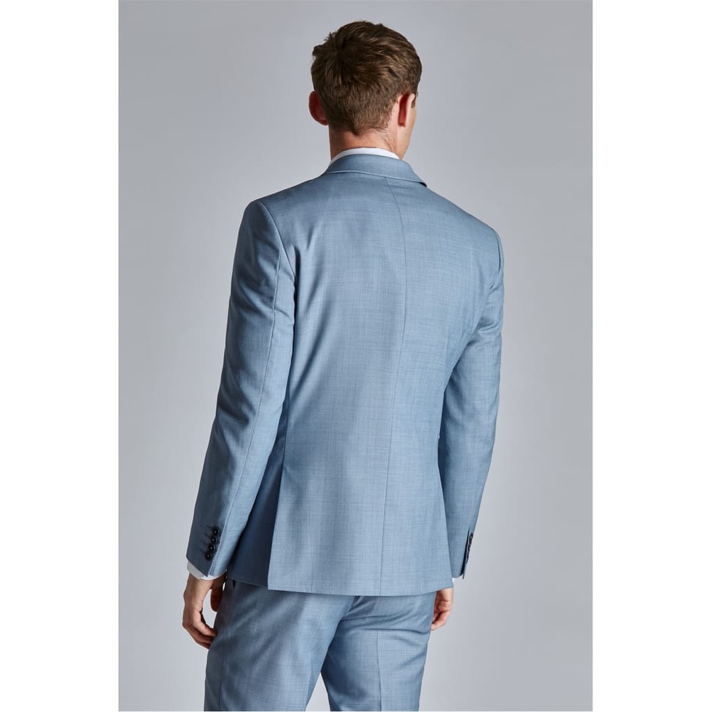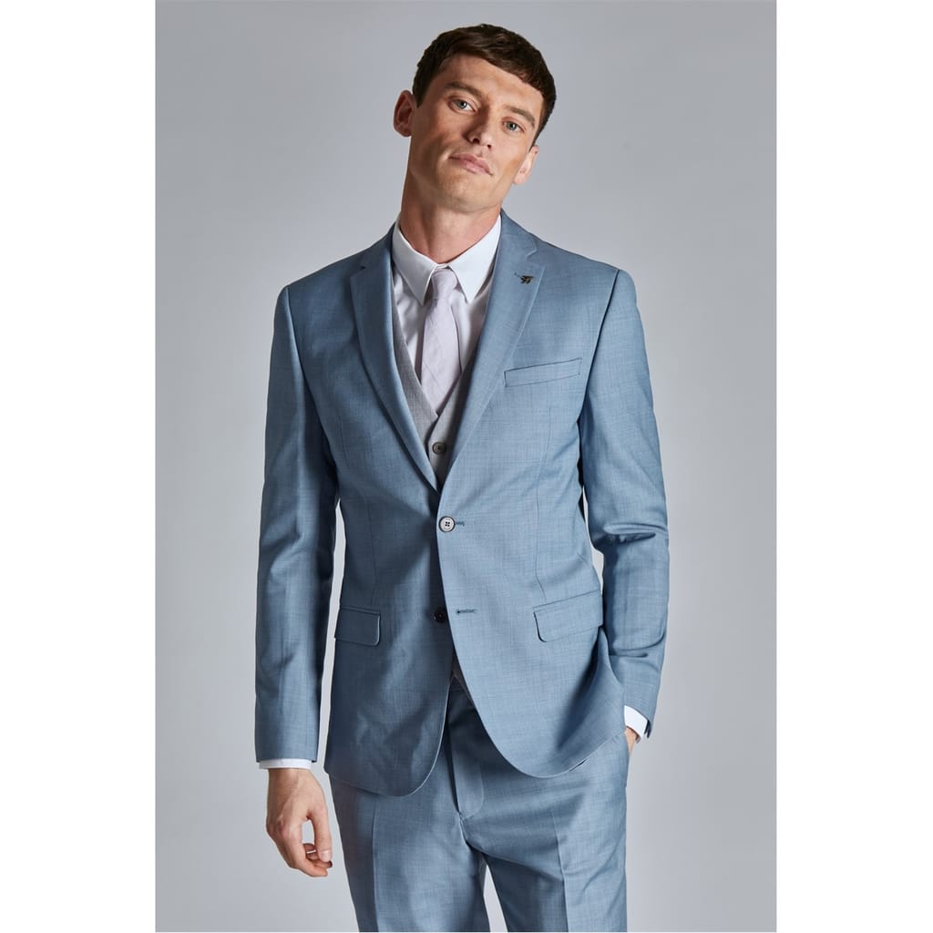 Elevate your formal wardrobe with this Ted Baker suit jacket. Crafted in a slim fit, this long jacket features a notched neckline and button closure, ensuring a sleek profile. The solid pattern and straight hemline add to its timeless appeal. Practical embellishments include chest and waist pockets, making it a functional yet stylish choice for outerwear and formal collections. -
