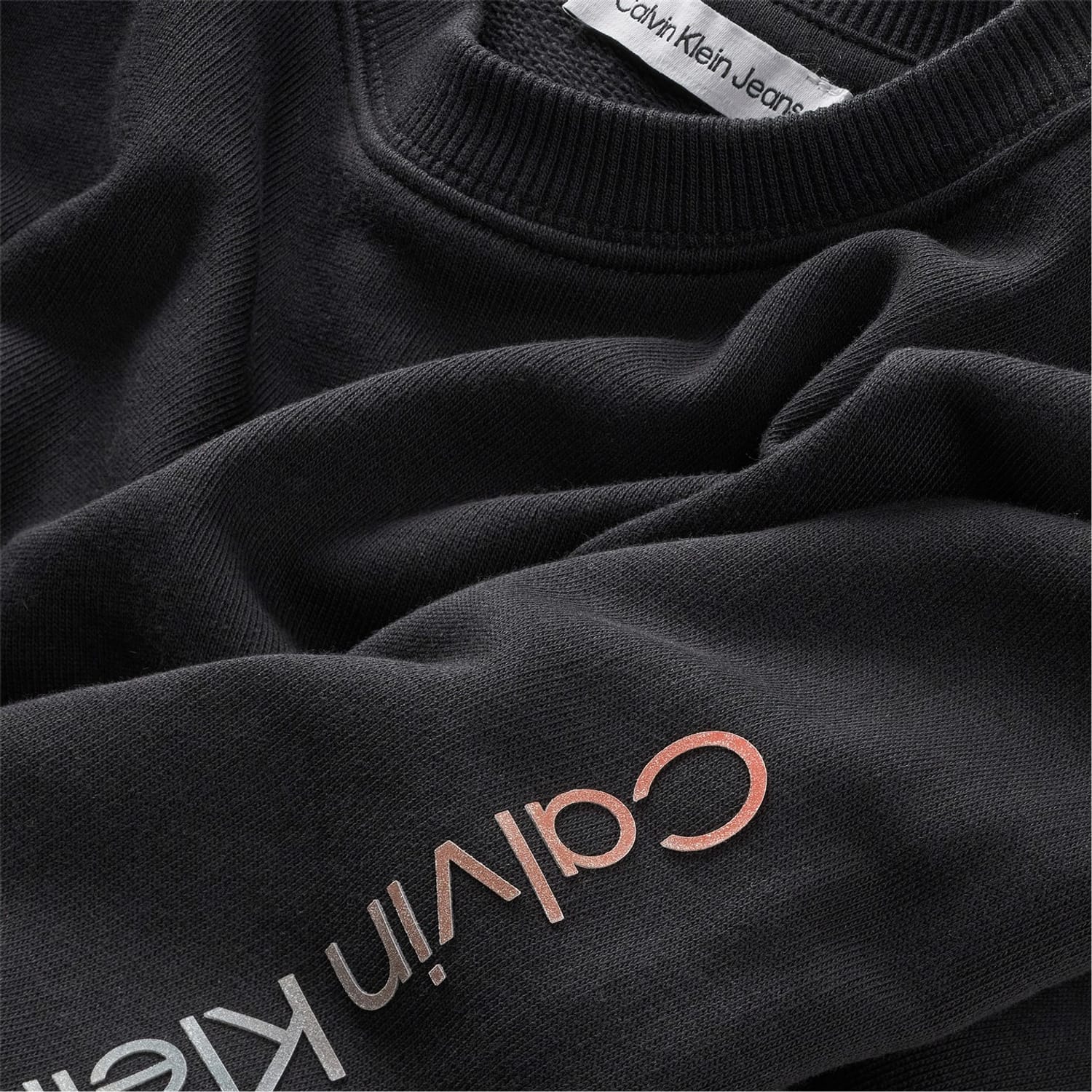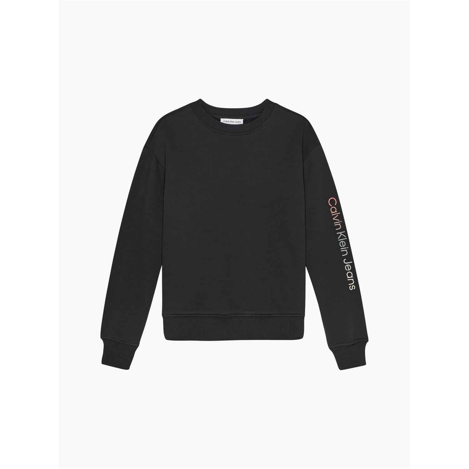 - Crafted from a soft cotton blend fabric, this sweatshirt offers a luxurious feel against the skin. The round neck and long sleeves provide a classic silhouette, while the ribbed cuffs and hem add a touch of sophistication to the design. With a relaxed fit, this sweatshirt ensures effortless style and comfort. Designed in a solid block colourway, it offers versatility, making it effortless to pair with the rest of your young fashionista's stylish ensemble. To complete the design, the sleeve of the sweatshirt is adorned with an eye-catching Calvin Klein Jeans ombré logo print as a testament to the brand's commitment to quality craftsmanship. Composition: 86% Cotton, 14% Polyester. Machine washable, follow care instructions. -