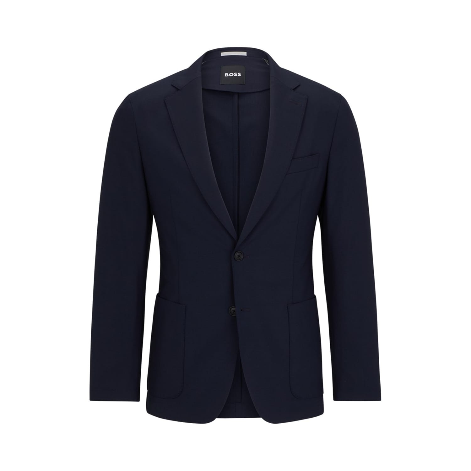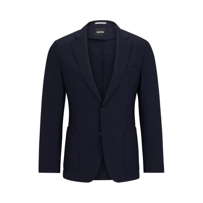 Elevate your outerwear collection with the Boss suit jacket. This long jacket features a notched neck and a button closure for a classic look. The solid pattern and regular fit ensure timeless style, while the straight hem provides a clean finish. Perfect for formal occasions, this piece is a refined addition to any wardrobe. -