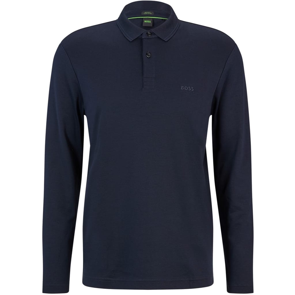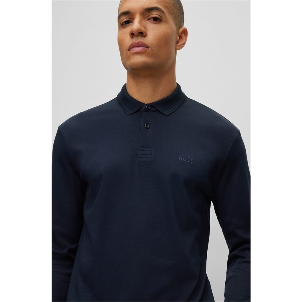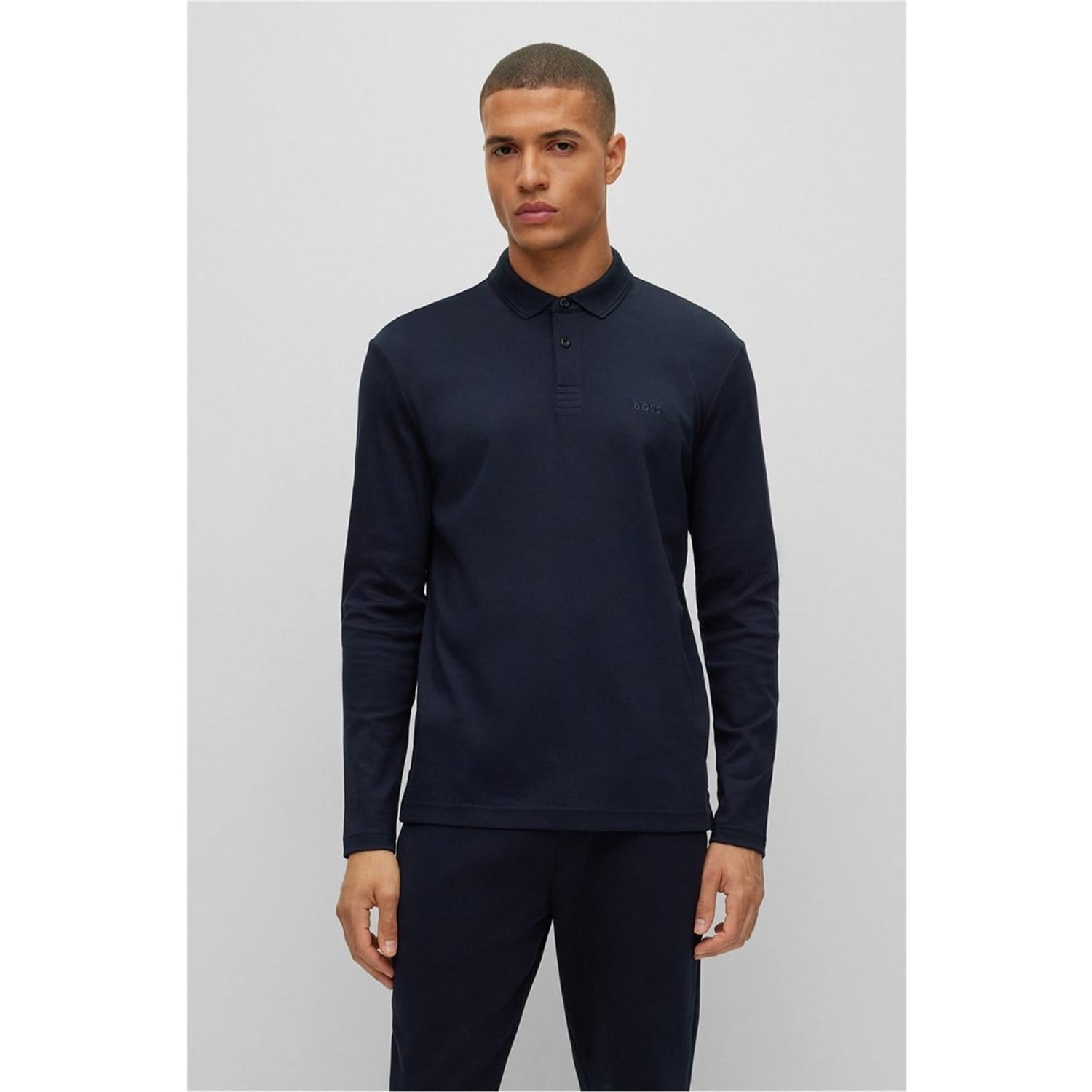 The BOSS Pirol Long Sleeve Polo Shirt is a great addition to your casual wardrobe, featuring a lightweight fabrication coupled with a fold down collar, two button fastening placket and long sleeves that offers a comfortable fit for all day wear. A solid colouring along with the classic BOSS branding to the chest completes the look. Machine washable, follow care label instructions.\ -