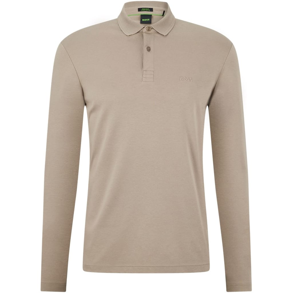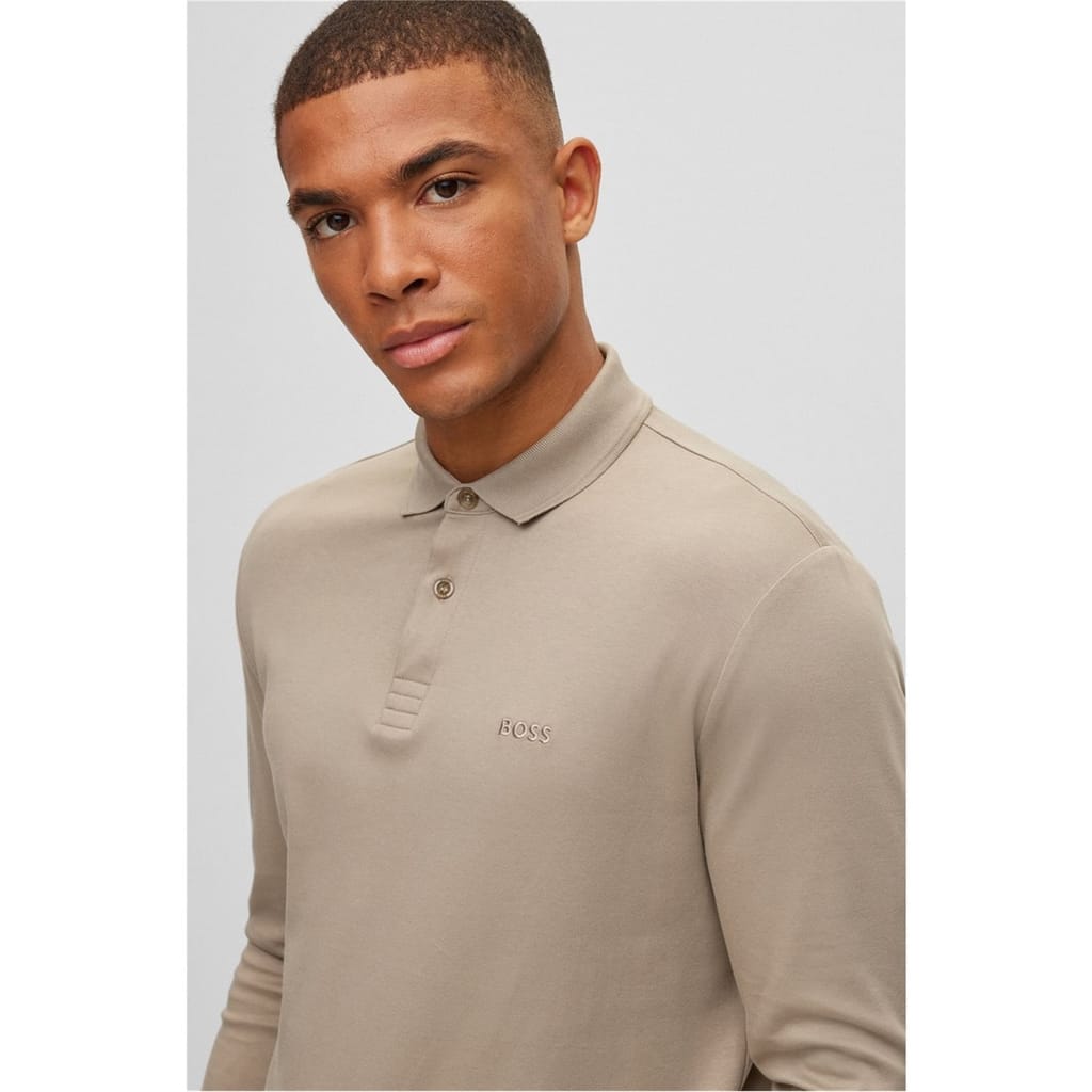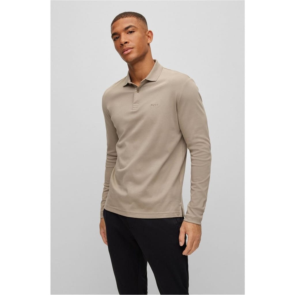 The BOSS Pirol Long Sleeve Polo Shirt is a great addition to your casual wardrobe, featuring a lightweight fabrication coupled with a fold down collar, two button fastening placket and long sleeves that offers a comfortable fit for all day wear. A solid colouring along with the classic BOSS branding to the chest completes the look. Machine washable, follow care label instructions.\ -