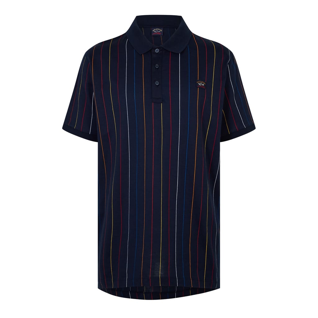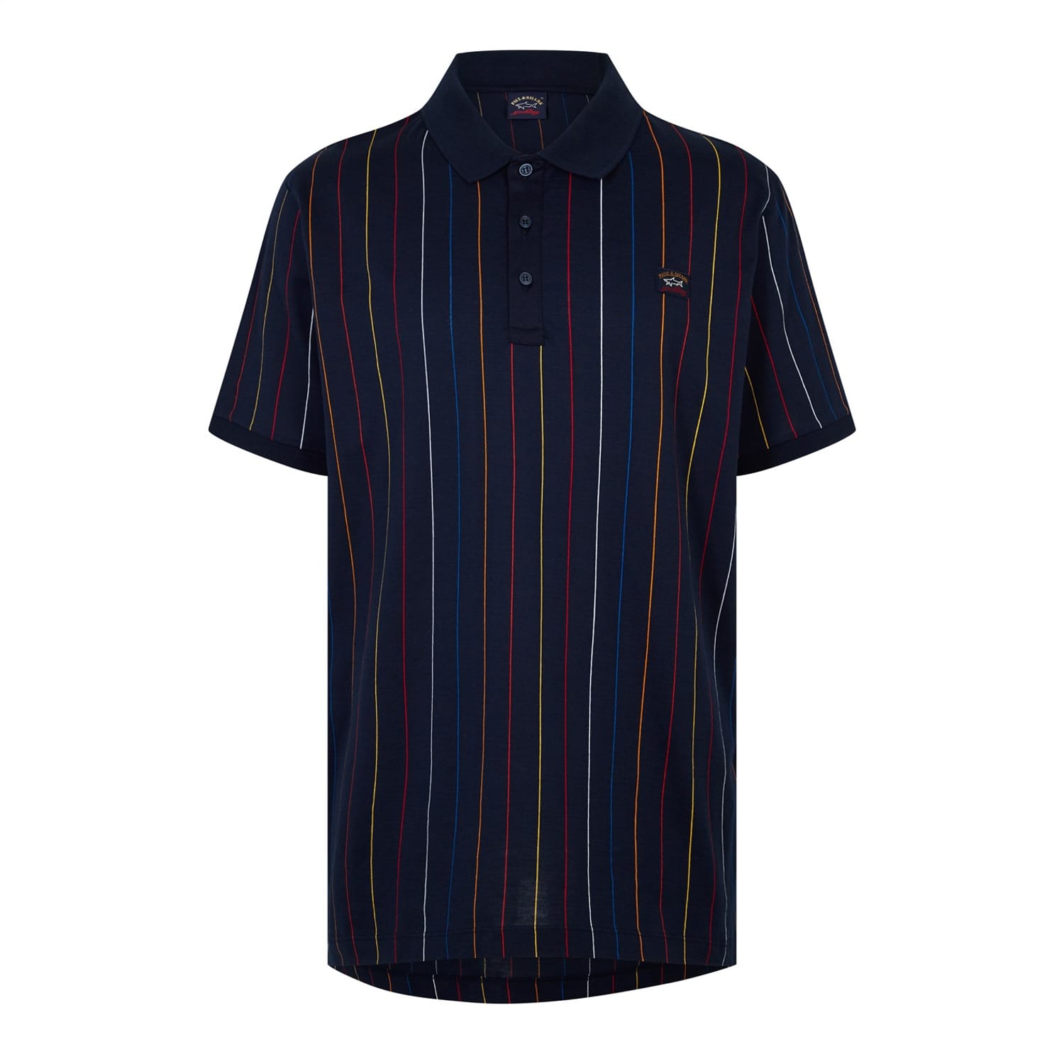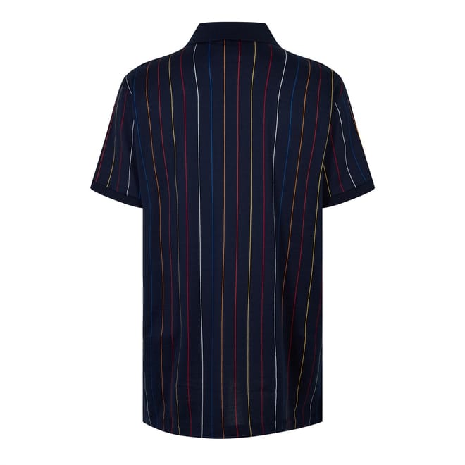 Revitalise your shirt collection with this stylish Knitted Polo Shirt from Paul and Shark. Constructed from 100% Cotton this top comes in an short sleeved, oversized fitting polo top design. Fitted with a classic stylish polo collar design, neatly fastened using a frontal three buttoned placket, ribbing to the cuffs allow for a more comfortable fit. The look is finished in a solid block navy design and completed with a eye catching multicoloured stripe design and signature brand and shark patch embroidered to the chest, signs off the shirt with a deluxe finish.