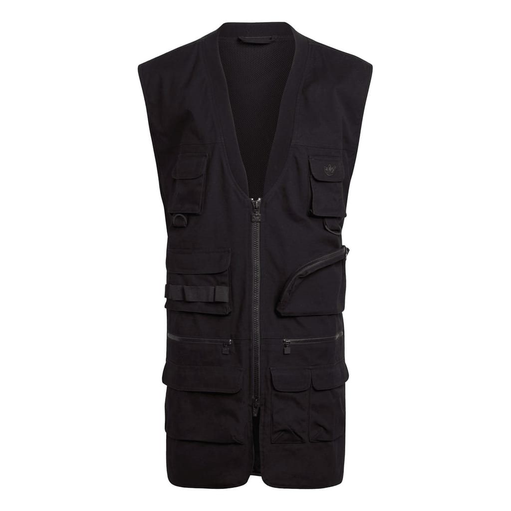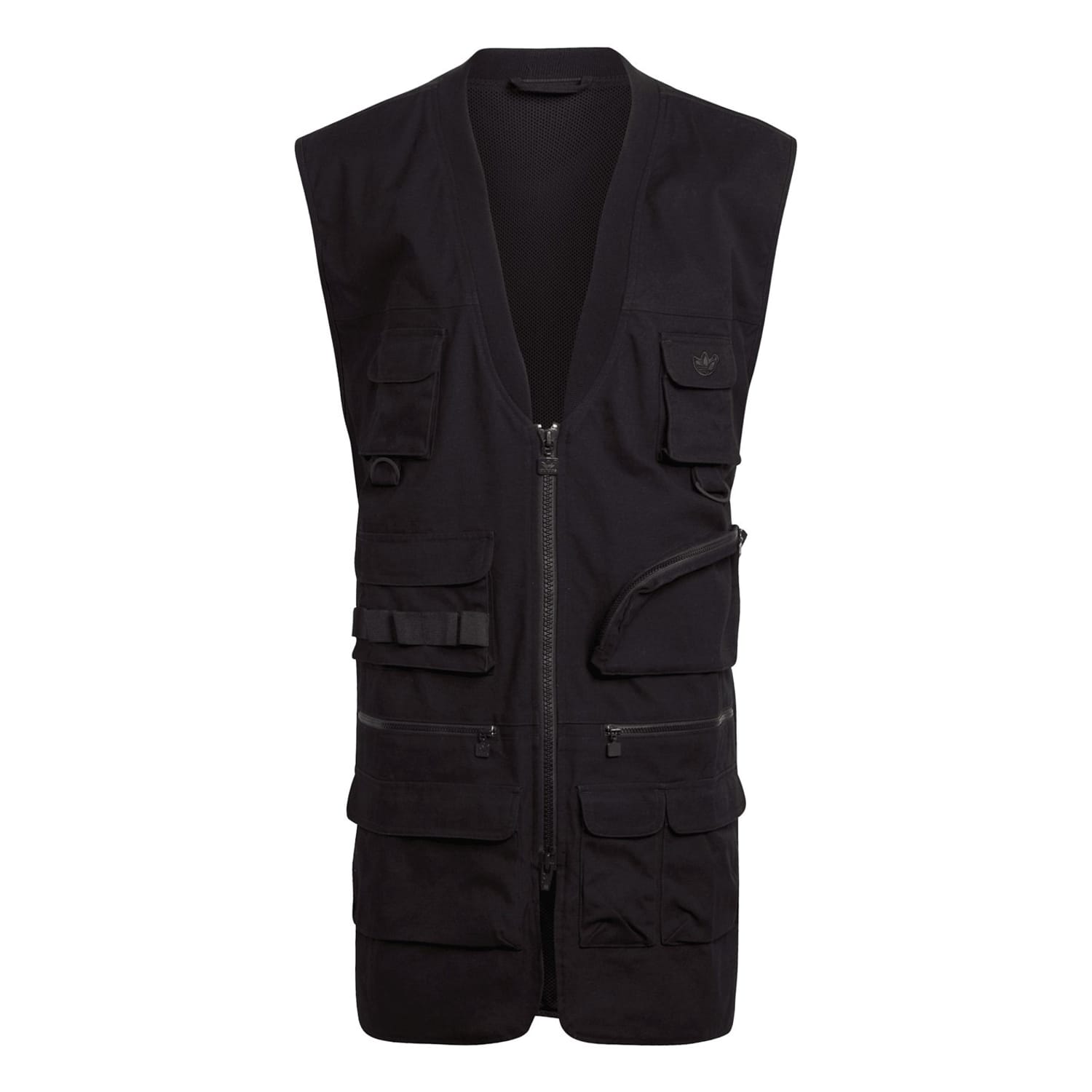 This adidas Originals cargo vest offers a relaxed fit with a solid pattern, perfect for a versatile yet functional addition to your wardrobe. Designed in a gilet style, it features multiple pockets including chest and flap pockets for ample storage. The vest is equipped with a zipper closure for convenience. -