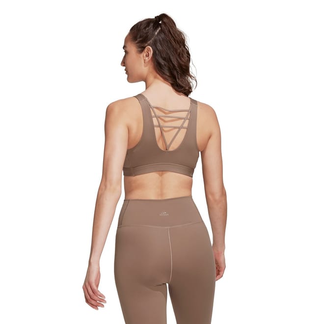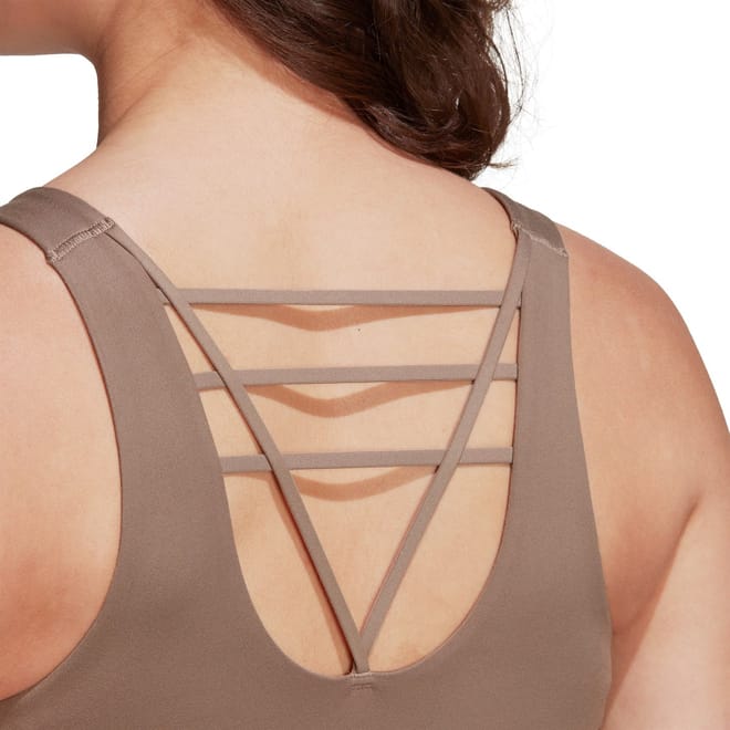 Stay active and comfortable with this adidas sports bra. Designed for training, this sleeveless athletic top features a scoop neck and a regular fit, making it perfect for any workout. The solid pattern and cropped length add a stylish touch to your activewear collection. Ideal for sporting activities, this top combines functionality with a sleek design. -