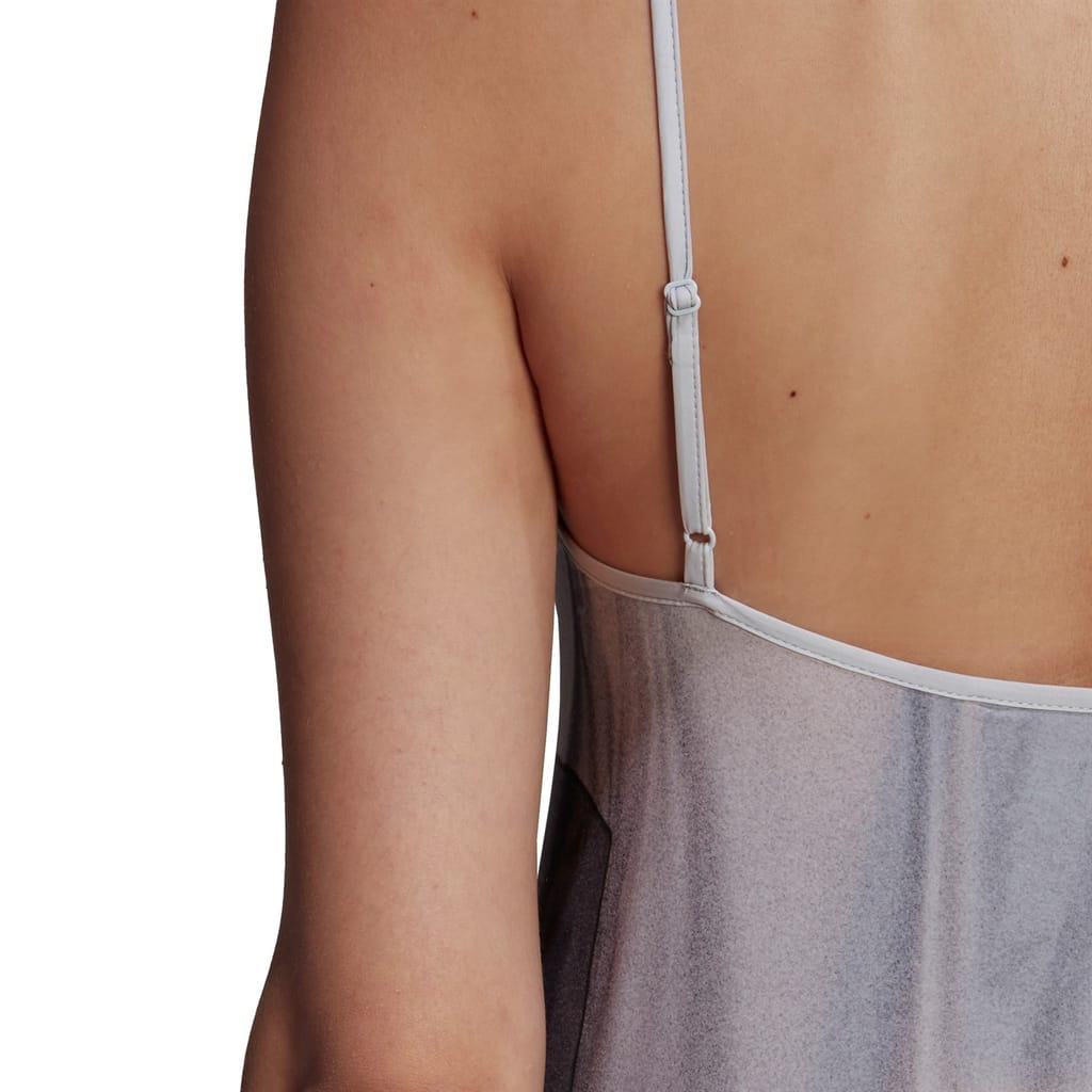 This adidas Originals slip dress is a stylish maxi length piece featuring a scoop neckline and spaghetti straps. The straight hemline and graphic print pattern enhance its casual appeal. Finished with the iconic adidas logo, this dress is perfect for making a statement with minimal effort. -