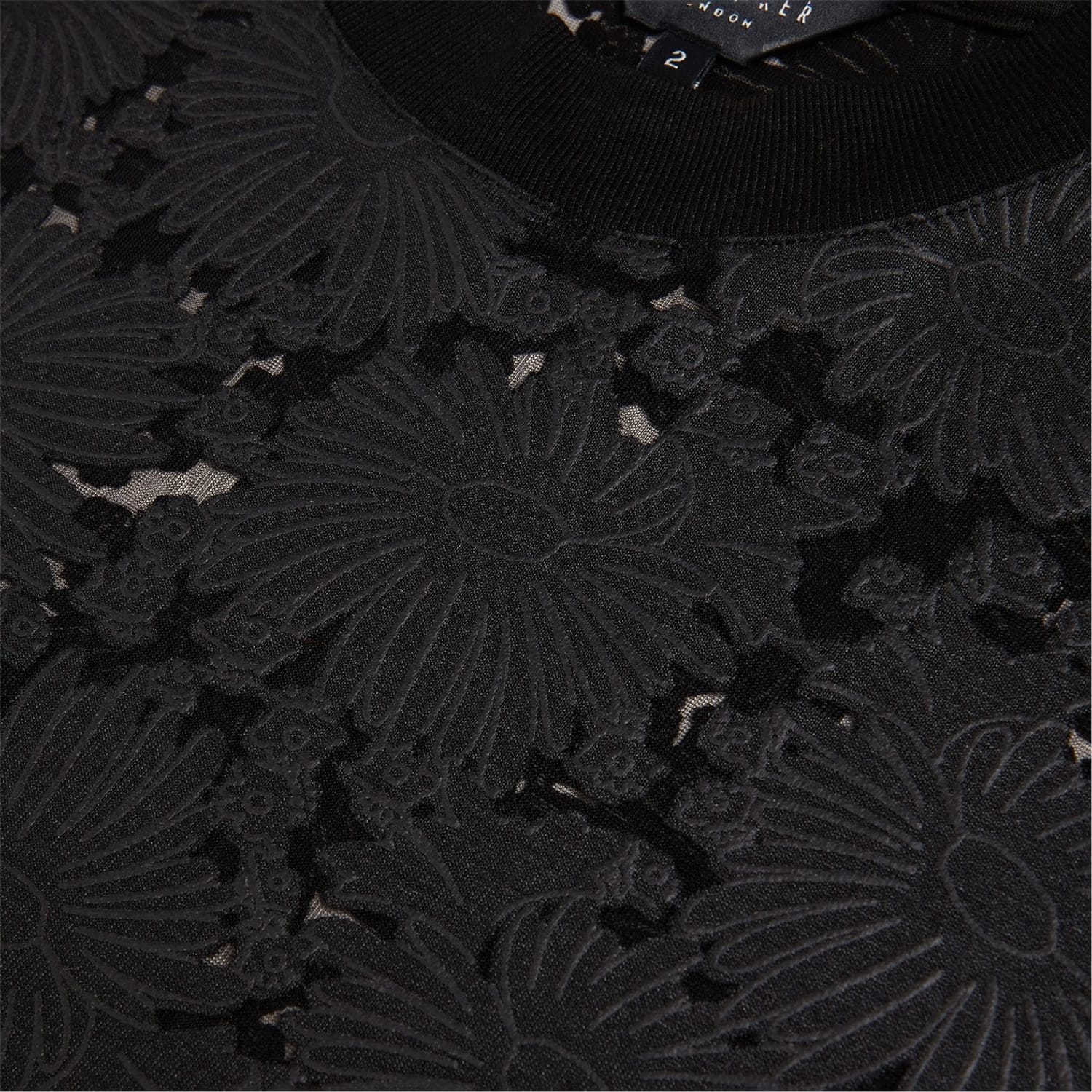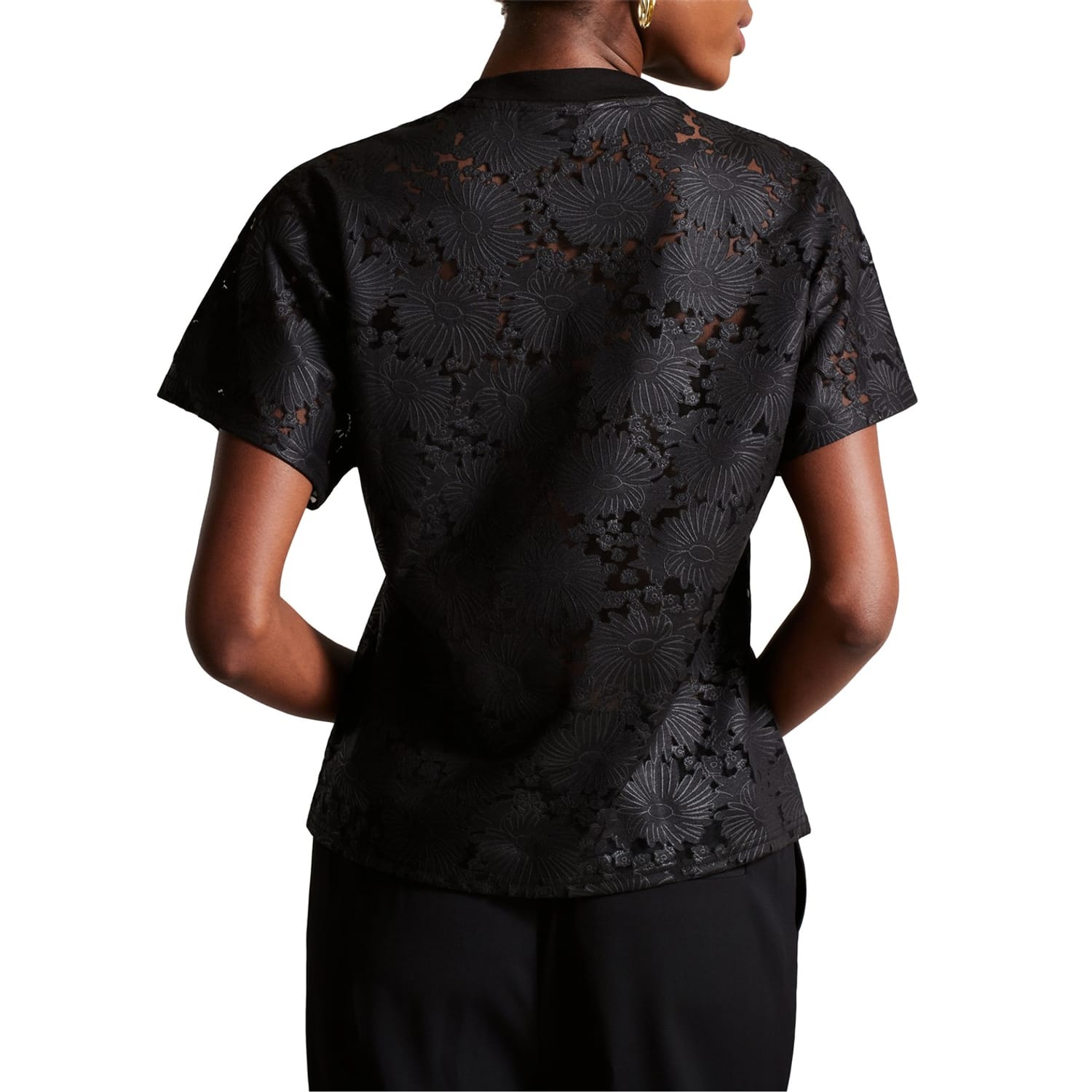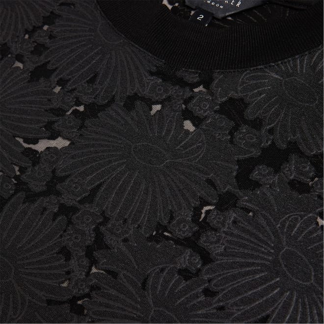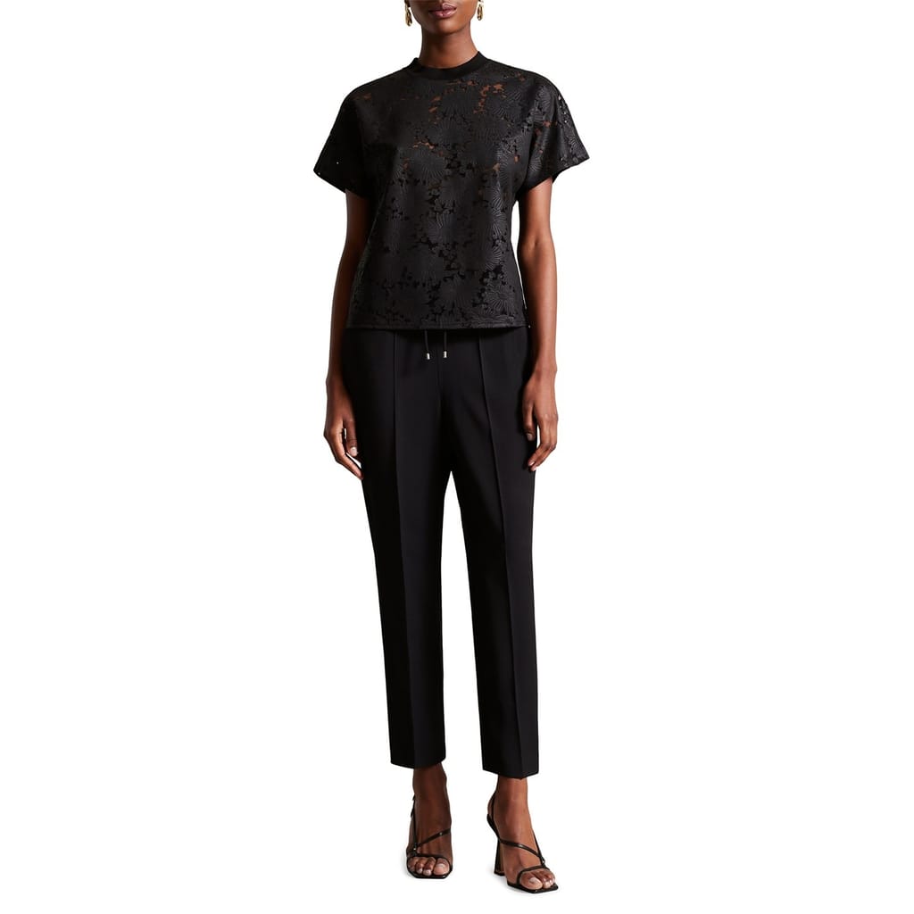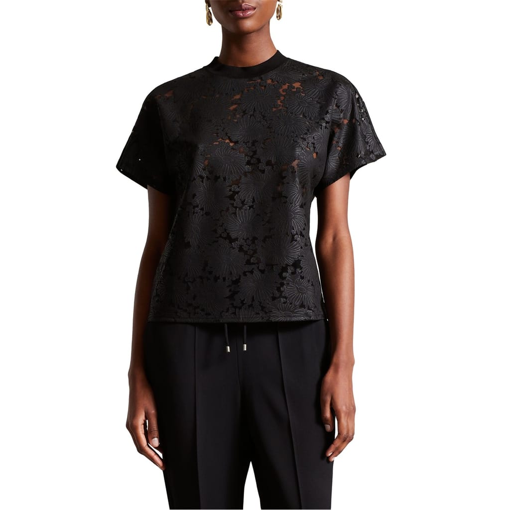 Elevate your casual everyday staples with style and grace with the Maralo Floral Lace Relaxed T-Shirt from Ted Baker. Meticulously crafted in a luxurious blend of viscose and polyester, the fabric ensures utmost comfort, making it perfect for any occasion. Adorned with a classic crew neck collar and boasts a relaxed fit and short sleeves, providing both comfort and versatility for effortless styling. Finished in a solid block colouring and completed in an all-over floral lace design adds a touch of femininity and grace. The cutout design offers a more alluring and stylish look, that offers a more striking and intricate finish.