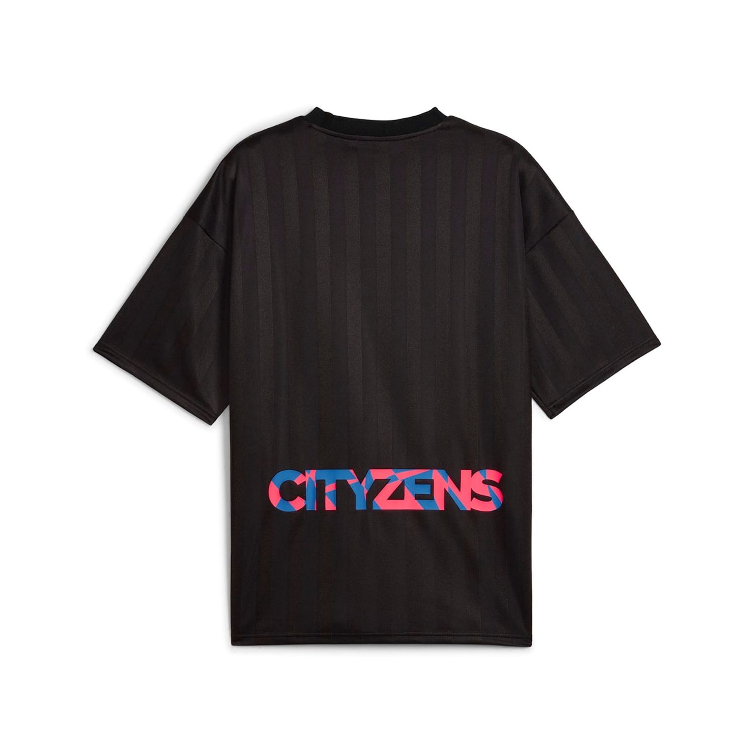Get ready to show your support for the Citizens with the Puma Manchester City FC NRG Shirt 2023 2024. Crafted with a soft fabric, this shirt ensures superior comfort, allowing you to focus on the game with unwavering dedication. The short sleeves provide freedom of movement, empowering you to take on the pitch with agility and ease. Featuring a classic crew neck design, this shirt exudes timeless style while keeping you cool and comfortable. The black colourway adds a sleek and powerful look, reflecting the spirit of a true champion. To complete the design, the shirt is adorned with the iconic Puma cat logo and the Manchester City crest to showcase your allegiance to the team. Whether you are hitting an intense training session or cheering on from the stands at the Etihad Stadium, this shirt is perfect for any occasion. Please refer to the garment label for the full composition and care instructions.