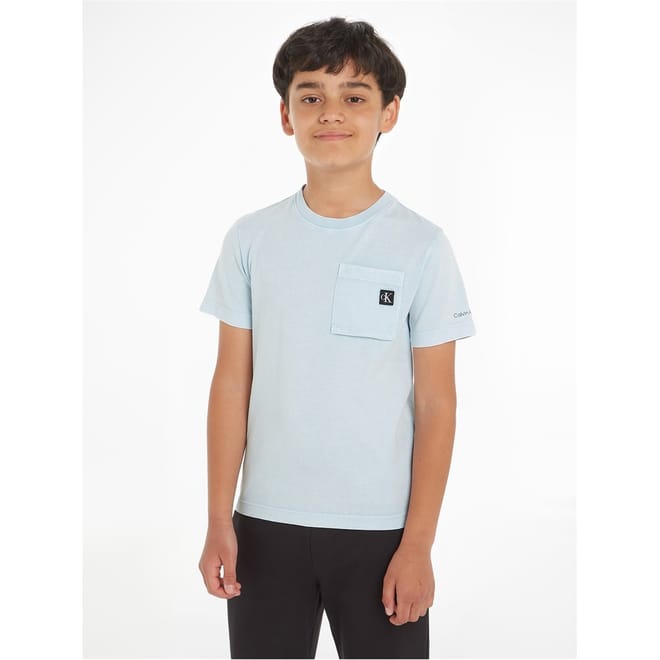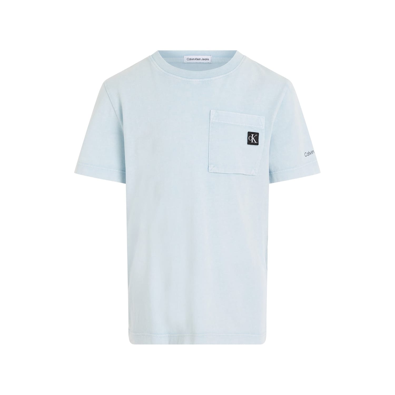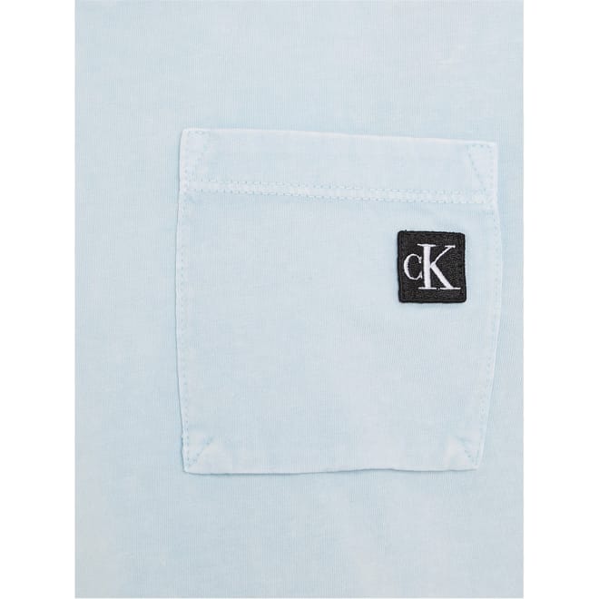This Calvin Klein t-shirt is designed with a regular fit and features a stylish wash pattern. It includes a pocket and logo embellishments that add a touch of detail to its casual look. Complete with a crew neck and short sleeves, this versatile top is perfect for everyday wear. -