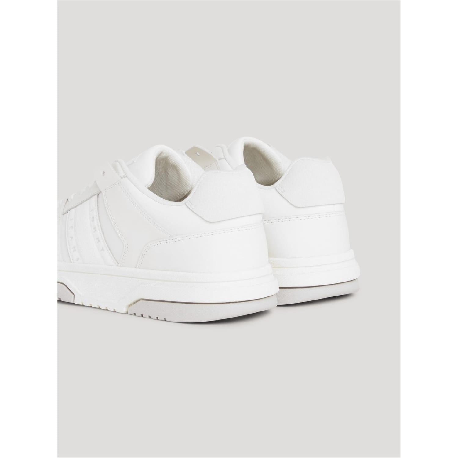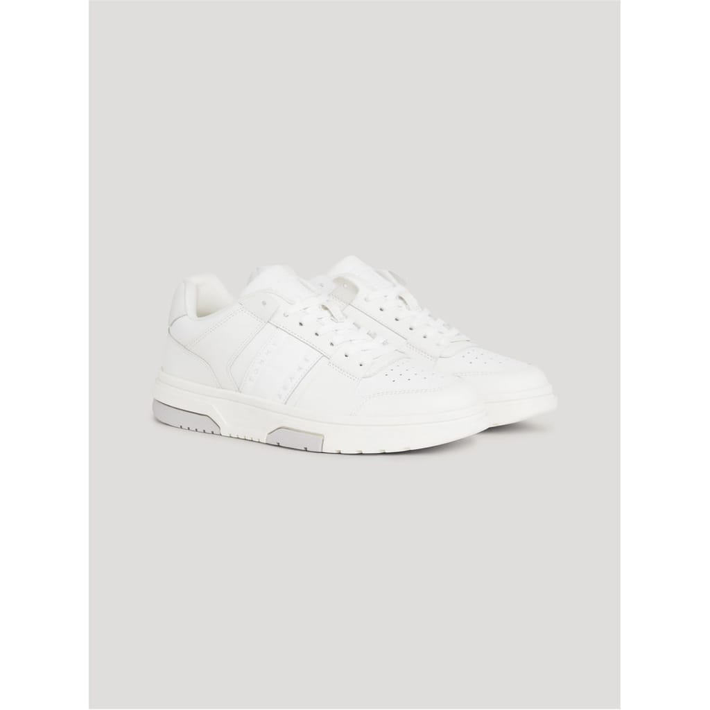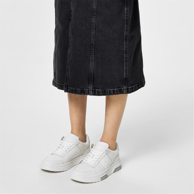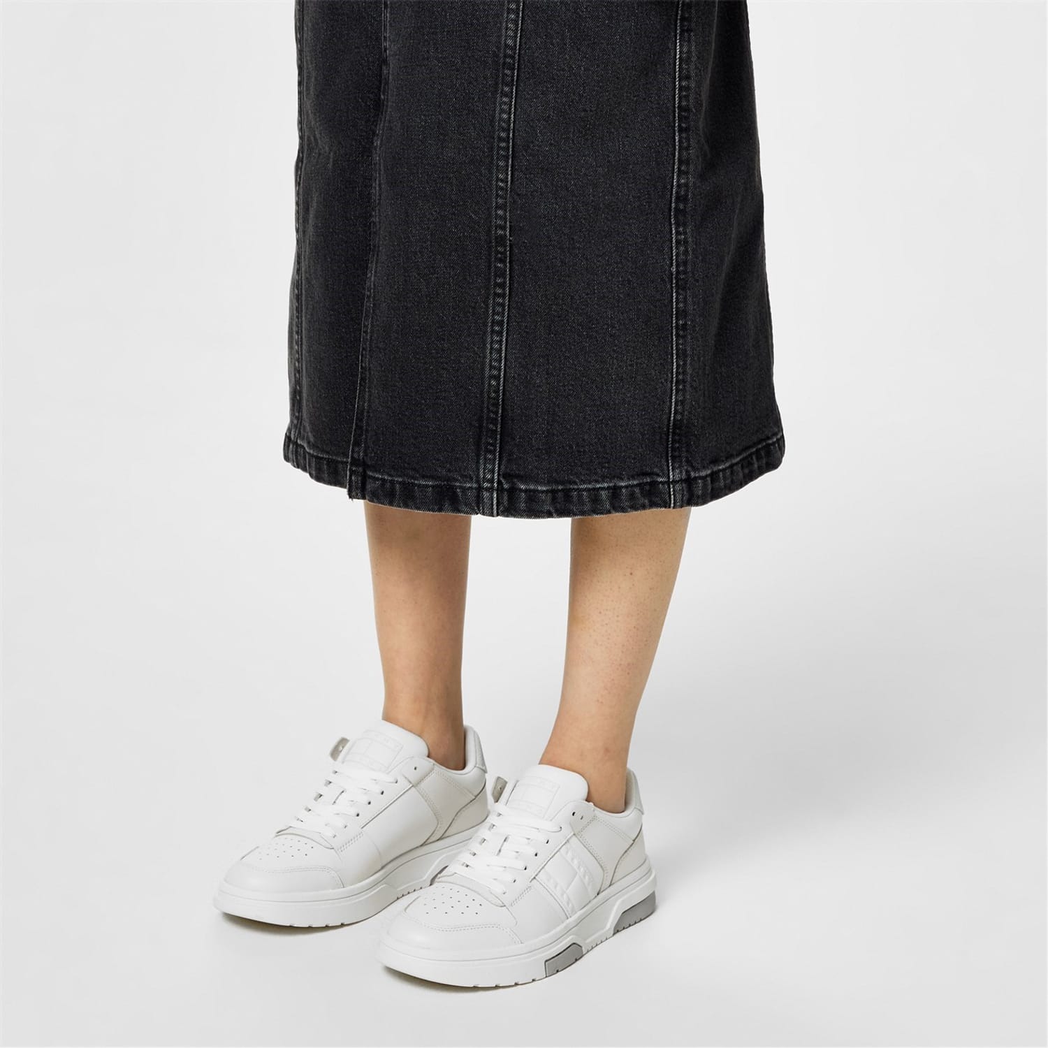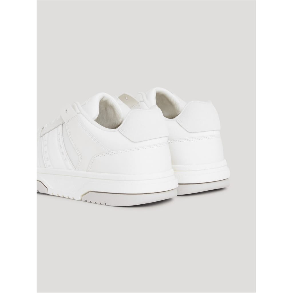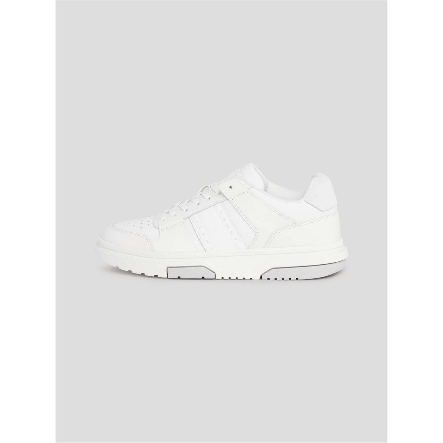 Tommy Jeans introduces a nostalgic skater-style revival through these leather cup sole trainers, boasting timeless ventilation detailing on their color-blocked uppers. These sneakers showcase a leather upper, a lining made from recycled polyester, an insole crafted from polyurethane, recycled polyurethane, and recycled thermoplastic rubber, all resting on a durable outsole composed of rubber and natural rubber. -