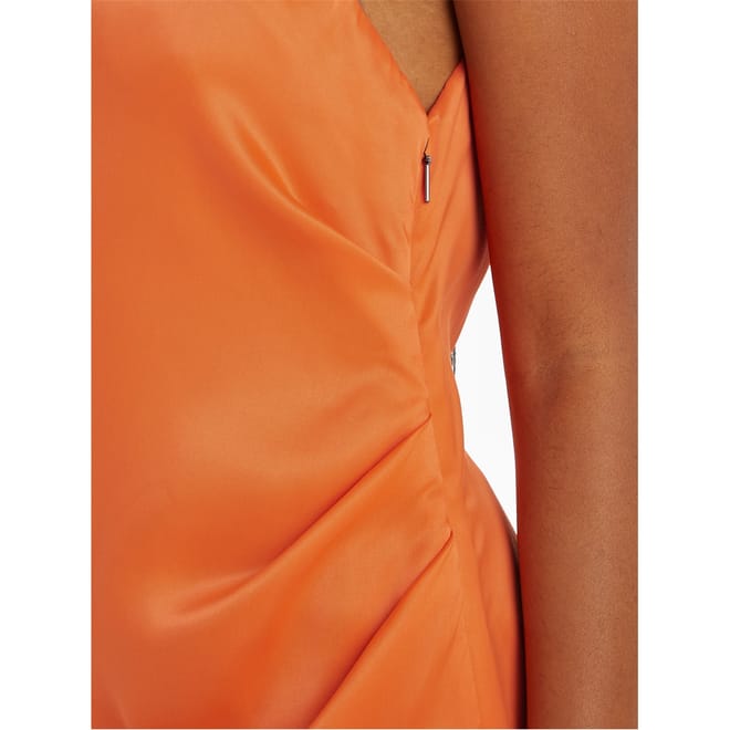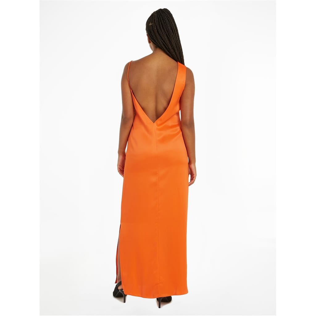 Make a striking impression with this Calvin Klein midi slip dress. Featuring a sleek asymmetric neckline and an open back, this solid-coloured piece boasts a unique asymmetrical hem. The slim fit accentuates your silhouette, while the zipper closure ensures a secure fit. Perfect for those who appreciate refined elegance and modern design. -