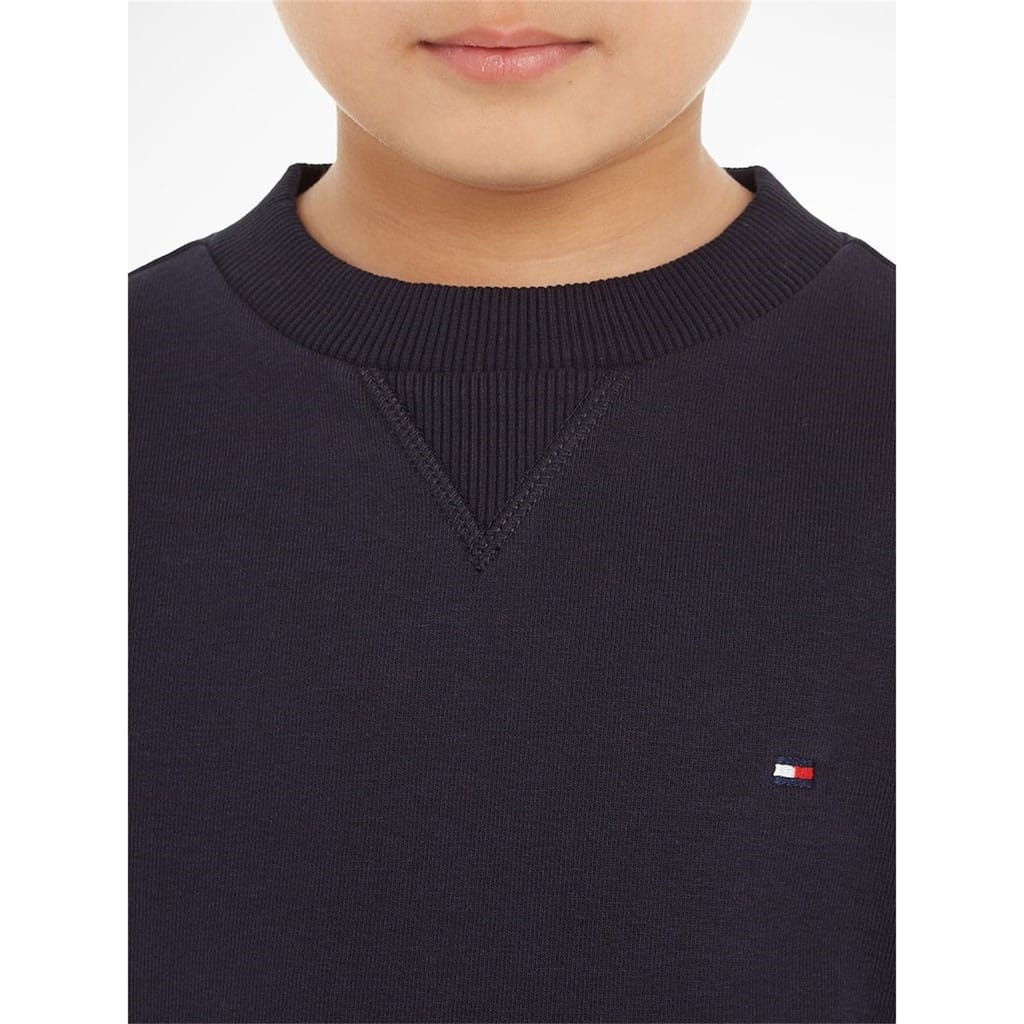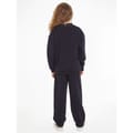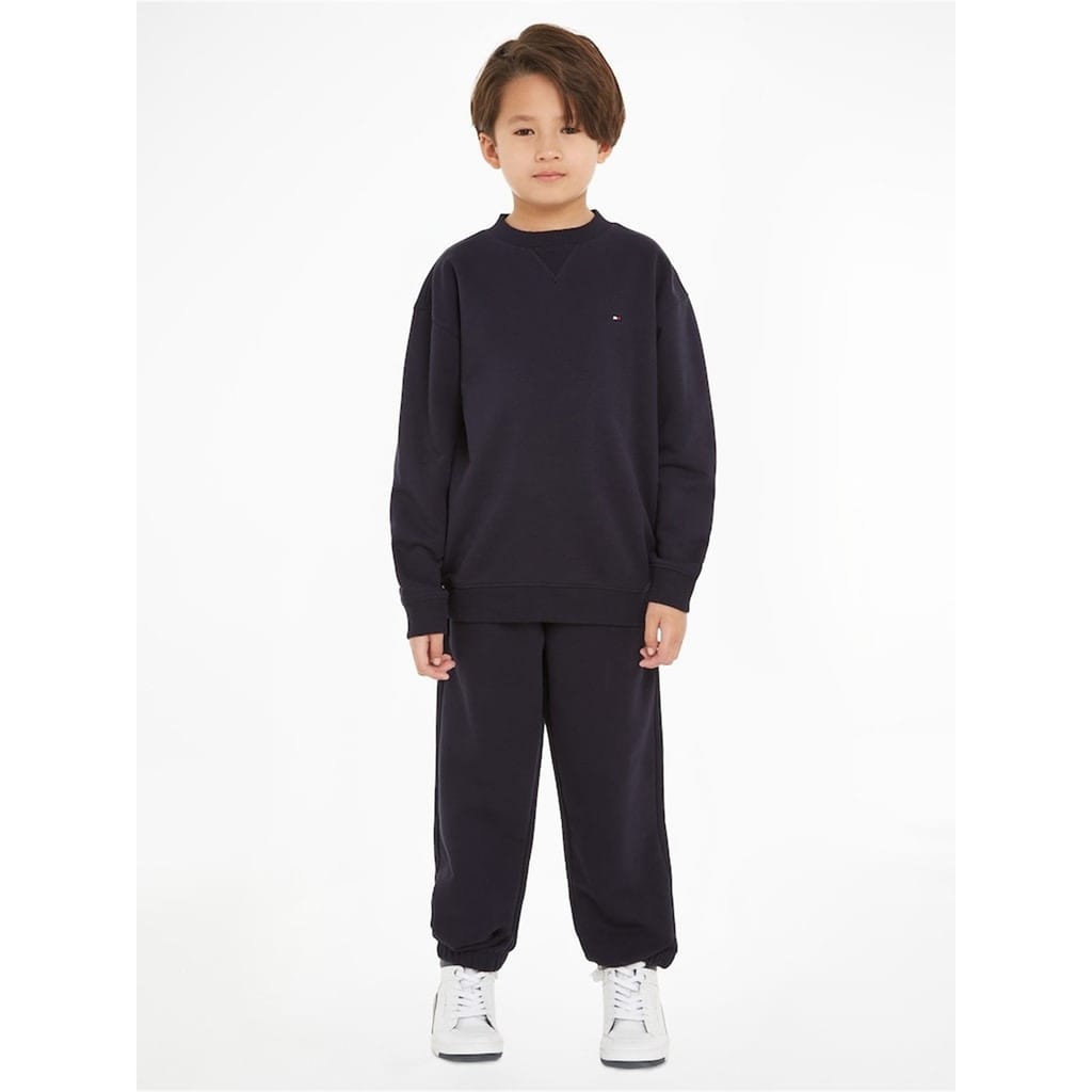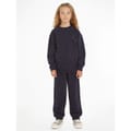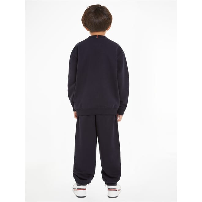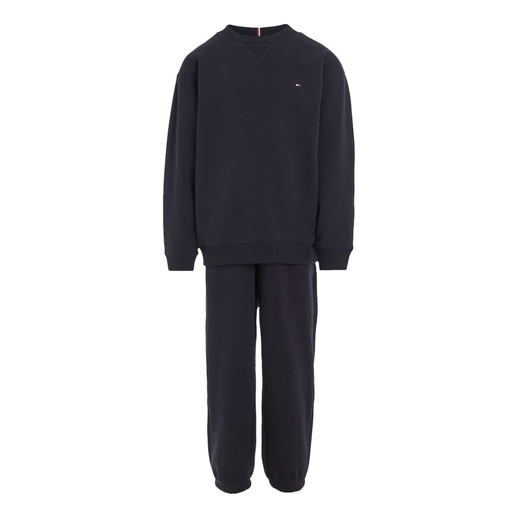 - Crafted from a soft and breathable cotton-blend jersey, this tracksuit is perfect for any occasion. The crew neck sweatshirt, with long sleeves and ribbed trims to the collar and cuffs, exudes a sense of sophistication. Meanwhile, the joggers feature an internal drawstring waistband and elasticated cuffs, offering a customizable fit and effortless style. With two hand pockets and a back pocket, this tracksuit seamlessly combines functionality and fashion. The branded stripe on the nape and the signature flag logo, embroidered on the chest and back pocket, proudly showcases the rich heritage of the Tommy Hilfiger brand. Whether it's a day at school, a casual outing, or simply relaxing at home, the Cotton Jersey Tracksuit Junior Unisex is designed for young fashion enthusiasts.< -