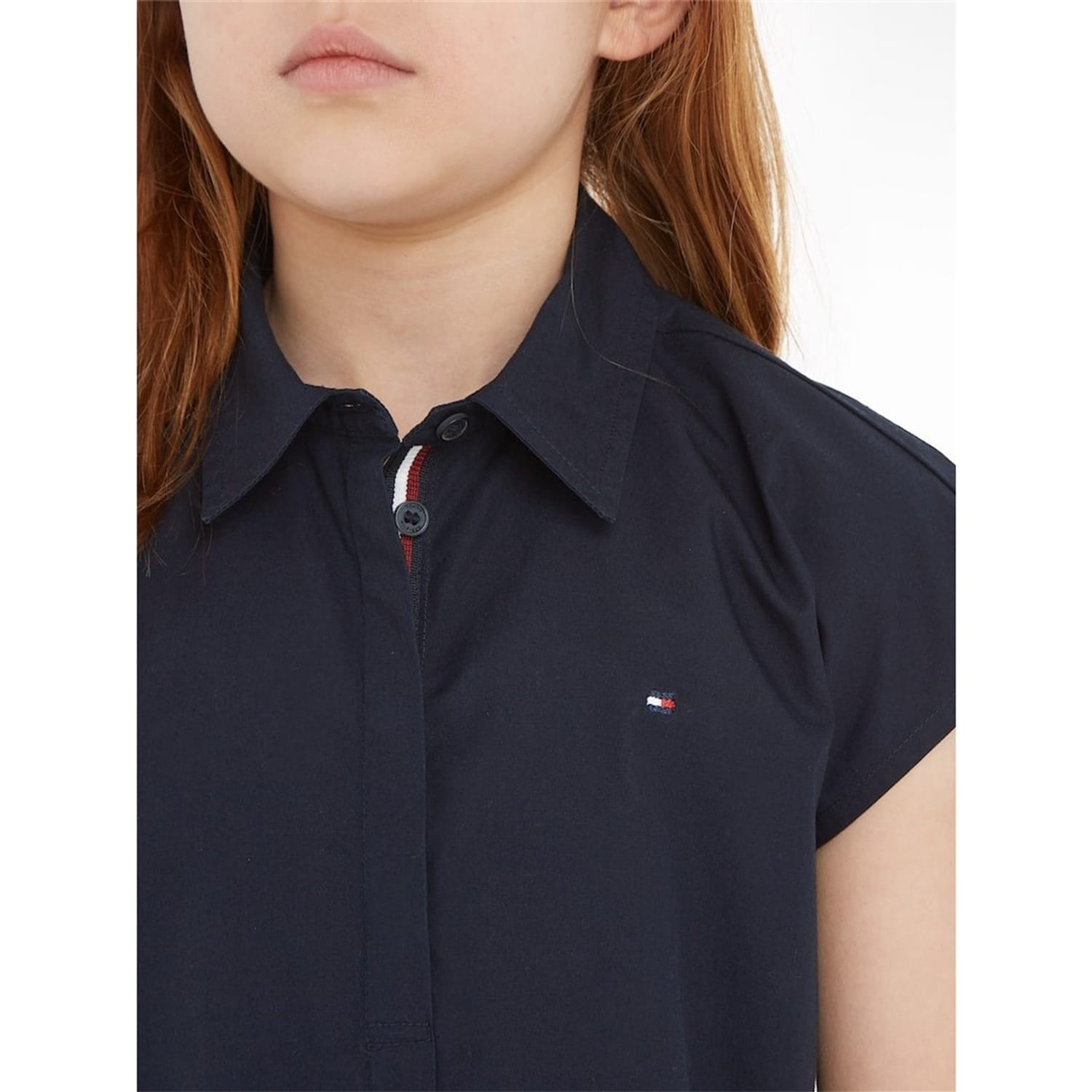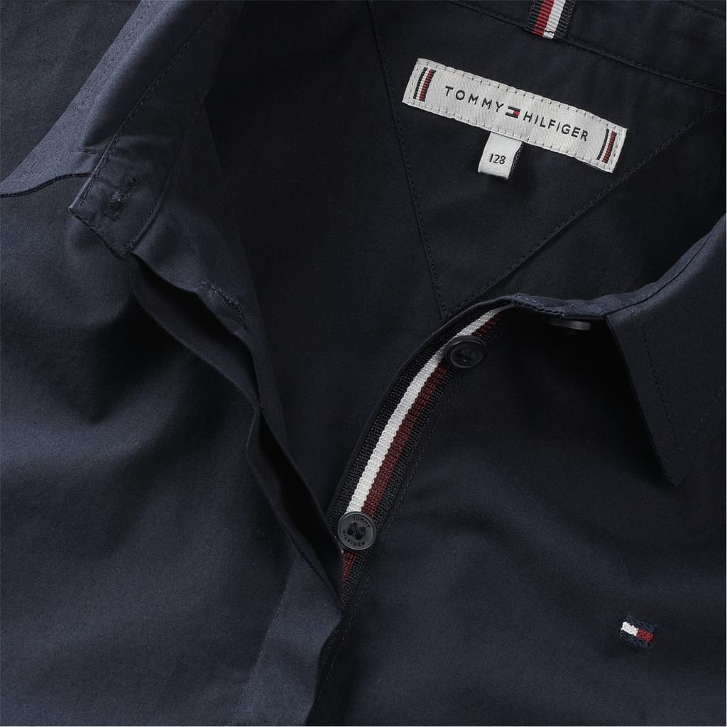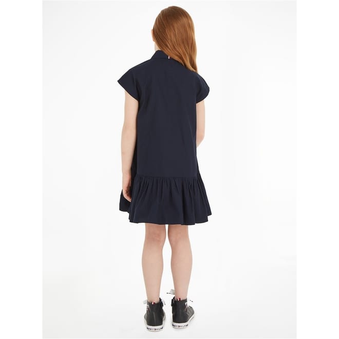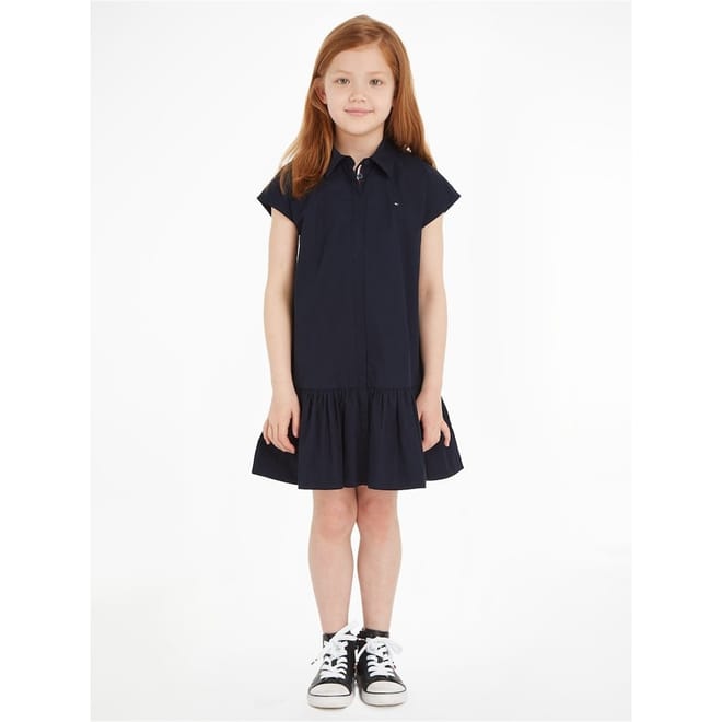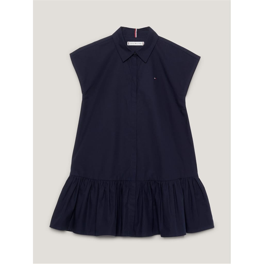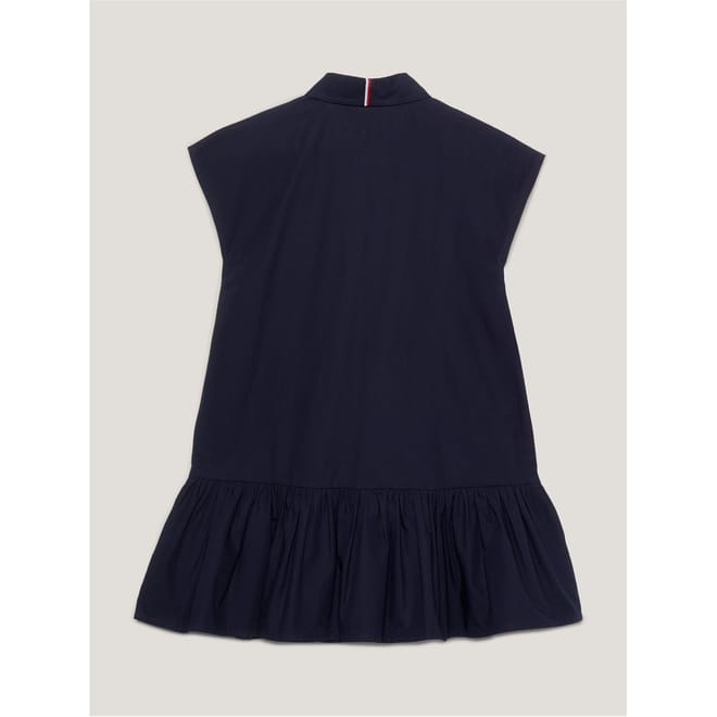 - Crafted from premium cotton and designed for the fashion-forward individual who appreciates accessible luxury, the relaxed fit of the shirt dress provides comfort, perfect for any occasion. The full button closure and pointed collar add sophistication and elegance to the design, while the short sleeves provide breathability during warmer weather. The pleated skirt adds texture and movement to the dress, creating an effortless yet stylish silhouette. Featuring a branded global stripe on the nape and the signature flag logo embroidered on the chest, this dress is a true embodiment of the Tommy Hilfiger brand. Whether it's a day out with friends or a formal occasion, this dress is designed for any occasion.