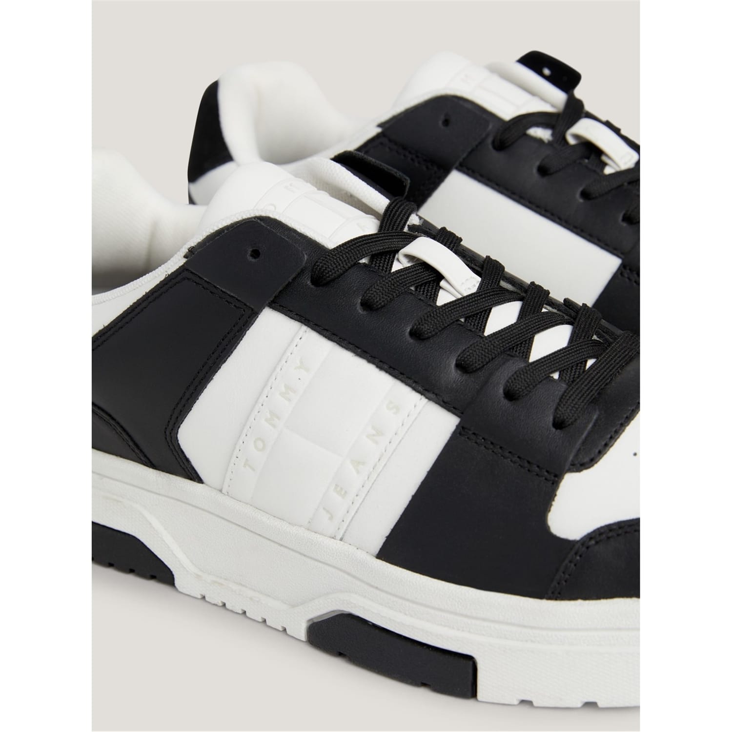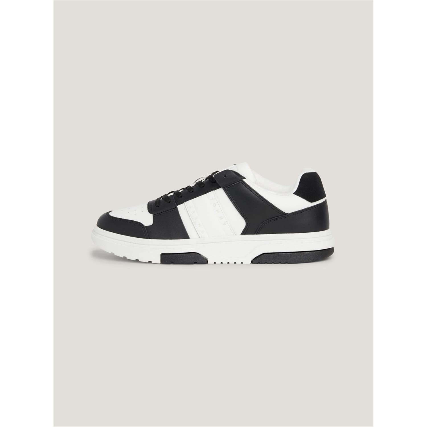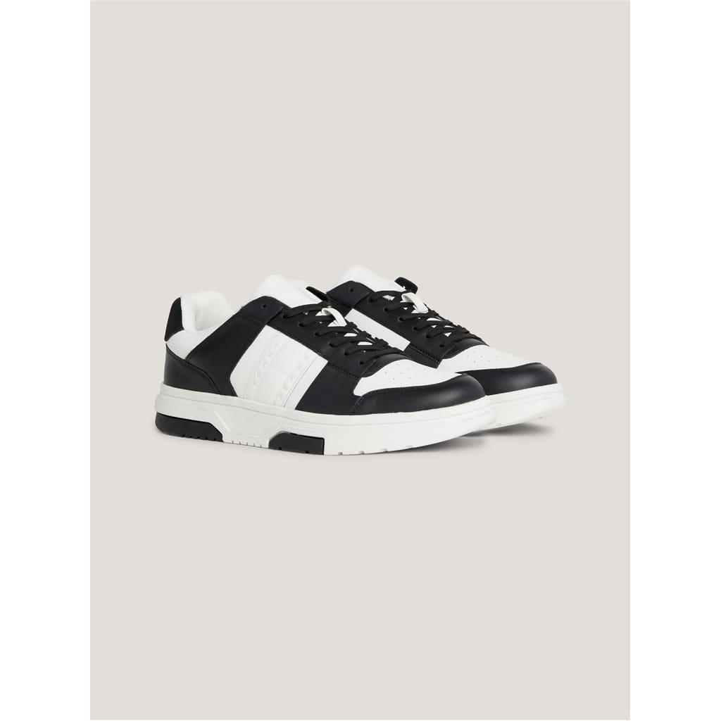 - Featuring a reliable lace-up fastening for a secure feel these stylish trainers were made with your comfort in mind furthered by the cup sole and recycled thermoplastic rubber, removable insock and ventilation detailing on the upper. These low-top trainers feature a comfortable round toe. Designed in an eye-catching contrasting panel aesthetic these trainers are ideal for your casual attire but practical enough for the everyday, with their clean lines and subtle Tommy Jeans b -