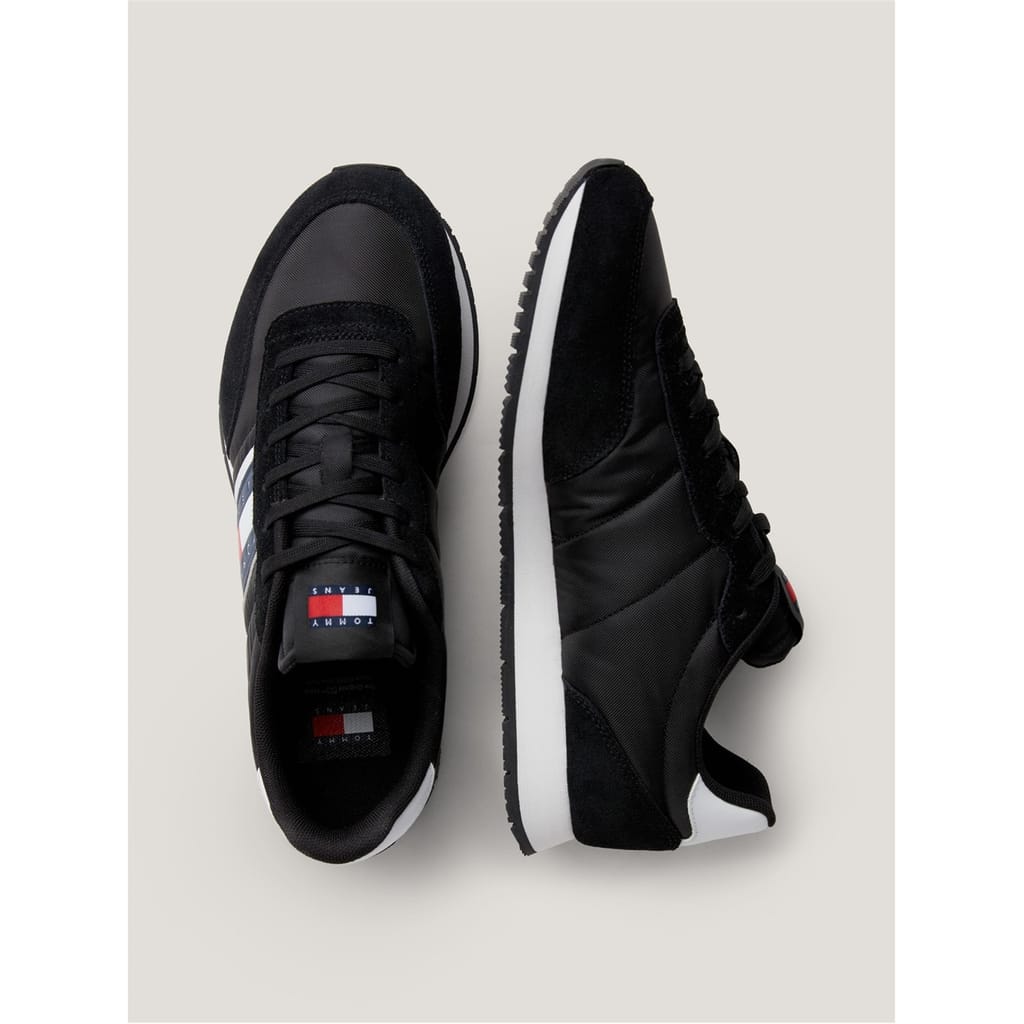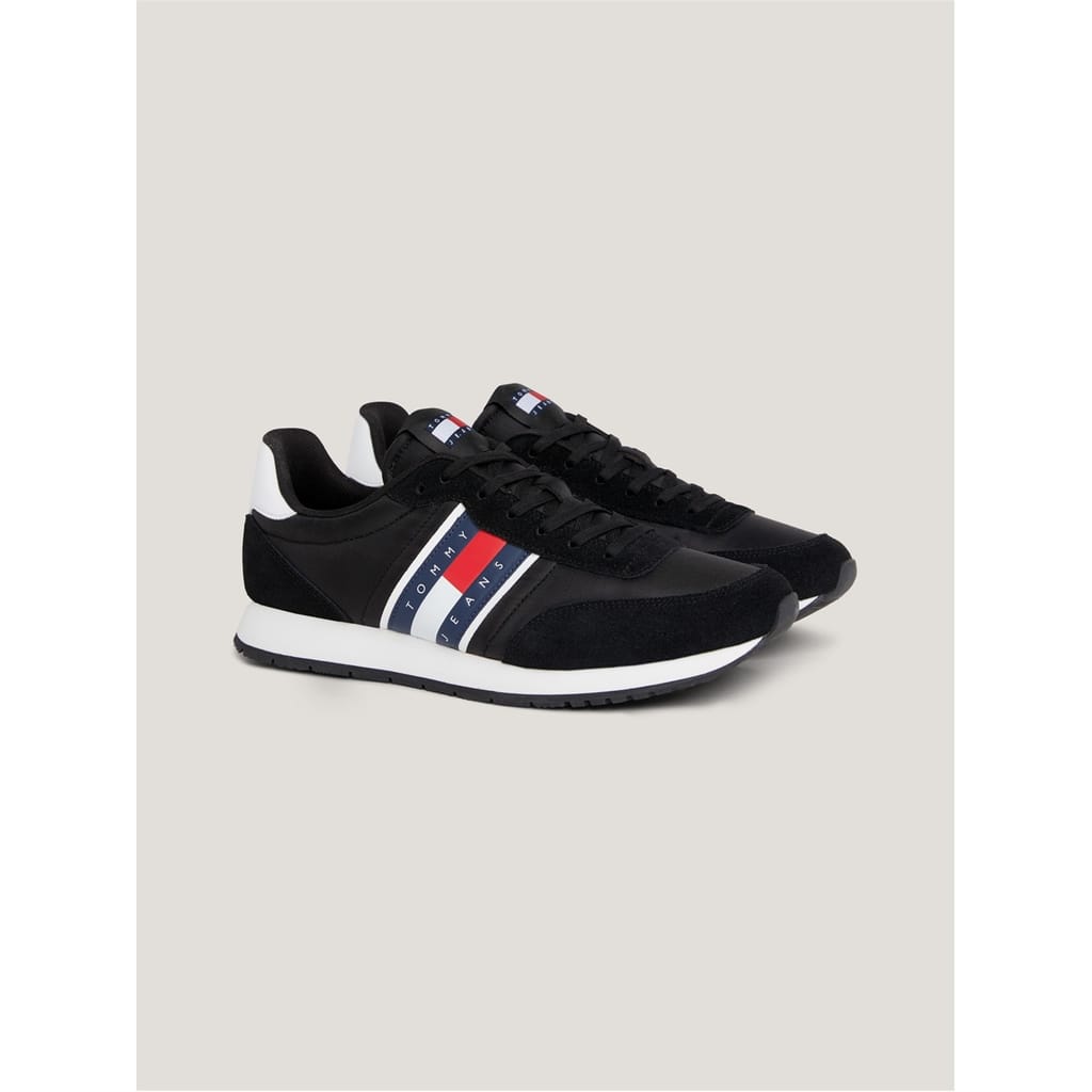 Step into timeless style and effortless sophistication with the Runner Casual ESS Trainers from Tommy Jeans. These low top trainers are not just a pair of shoes; they are an essential, a must-have for fashion-forward individuals. Evoking a perfect blend of sporty charm and urban elegance, these trainers are bound to capture the attention of style enthusiasts everywhere. Crafted with a black leather upper, they exude a sleek and polished look that is further accentuated by classic branding details. As you slip your feet into these running inspired trainers, you'll experience a sense of durability and comfort, thanks to the sturdy rubber sole unit. The full lace closure ensures a secure and adjustable fit, while the two-tone colourway adds a touch of contemporary flair. Whether you're strolling through the city streets or attending a casual gathering, these trainers are the perfect choice to complement your outfit. Upper: Leather. Lining: Fabric. Sole: Rubber. -