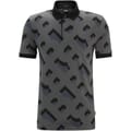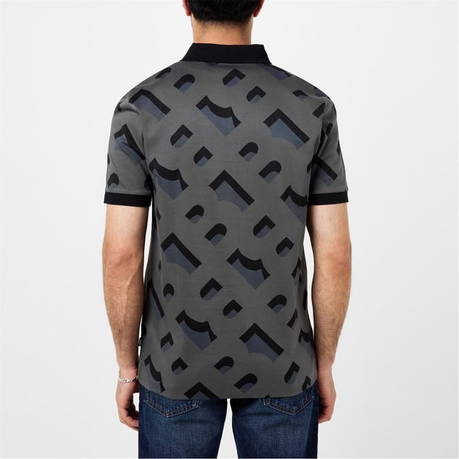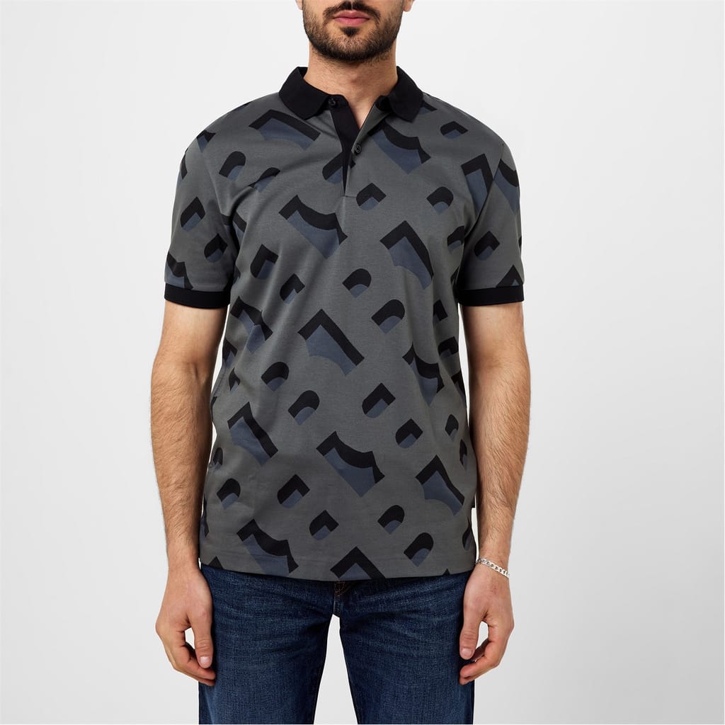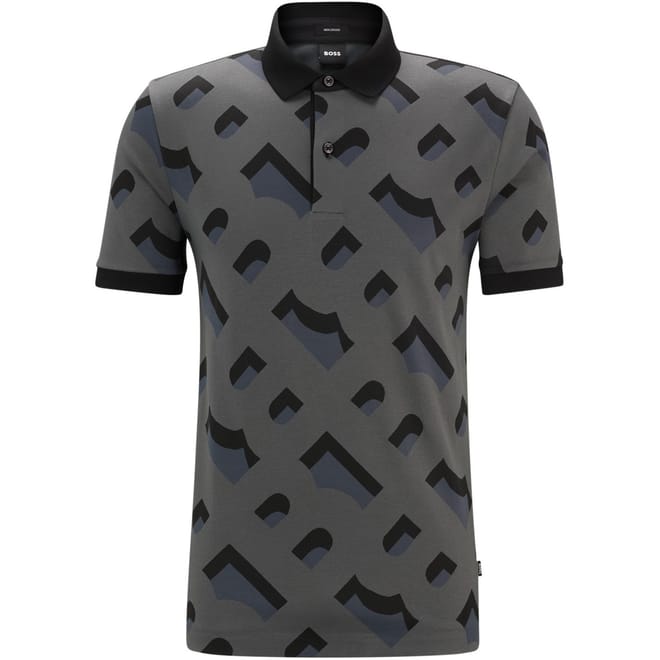This BOSS polo shirt is a perfect blend of style and comfort. Featuring a geometric pattern, it comes with short sleeves and a ribbed cuff. The polo collar adds a classic touch, while the regular fit ensures ease of wear. The button closure completes this versatile top. -