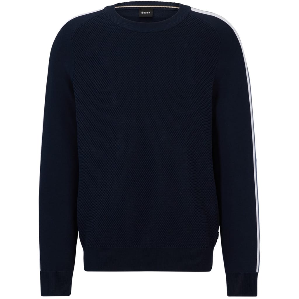 Elevate your wardrobe with this Boss sweater. Crafted from knit fabric, it features a crew neck and long sleeves with ribbed cuffs. The regular fit ensures comfort while the solid pattern provides a timeless look. A subtle logo embellishment adds a touch of sophistication. -
