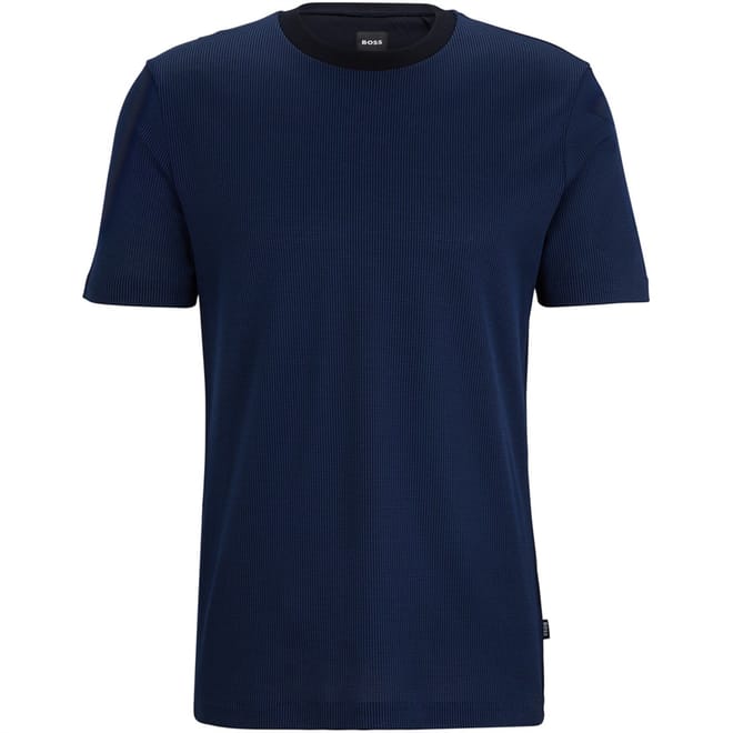 Elevate your essentials with this Boss t-shirt. Featuring a classic crew neck and short sleeves, it offers a regular fit for all-day comfort. The solid, ribbed pattern adds subtle texture, while the iconic logo embellishment gives a nod to the brand’s heritage. Perfect for a timeless, versatile look. -