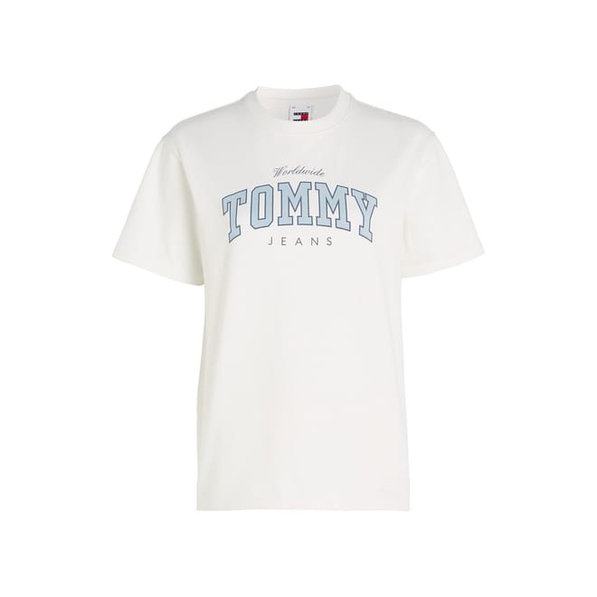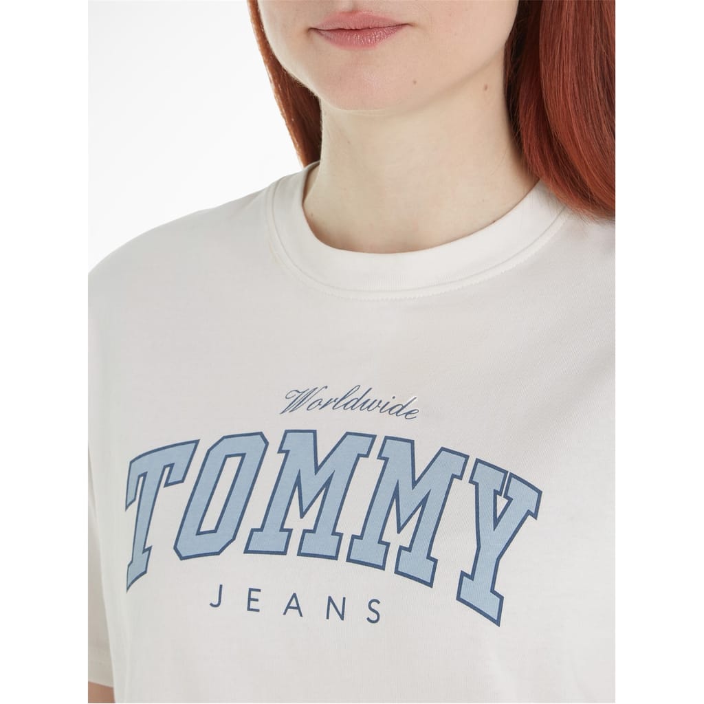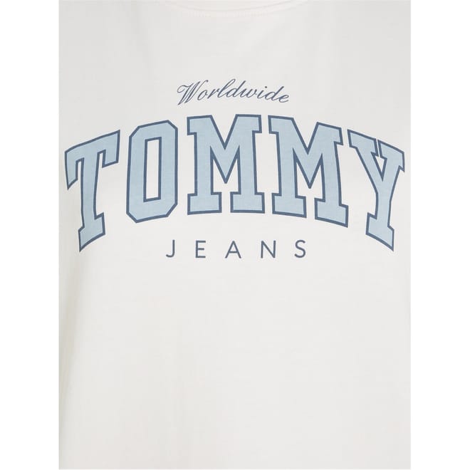 This Tommy Jeans varsity t-shirt features a regular fit and crew neck, perfect for casual collections. Embellished with a logo and graphic lettering, it has a stylish graphic print. The short sleeves make it ideal for everyday wear. -