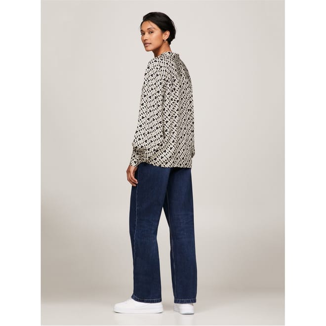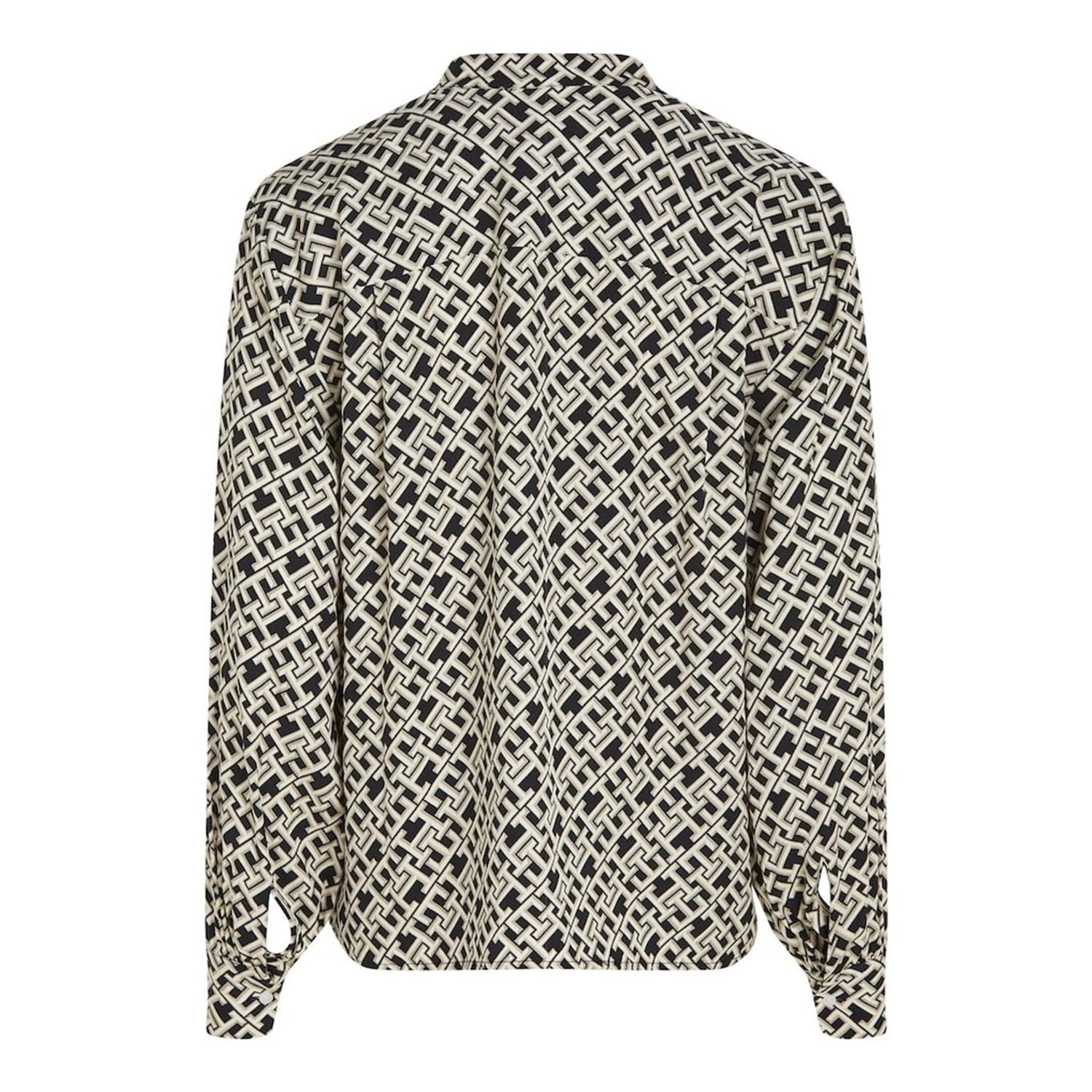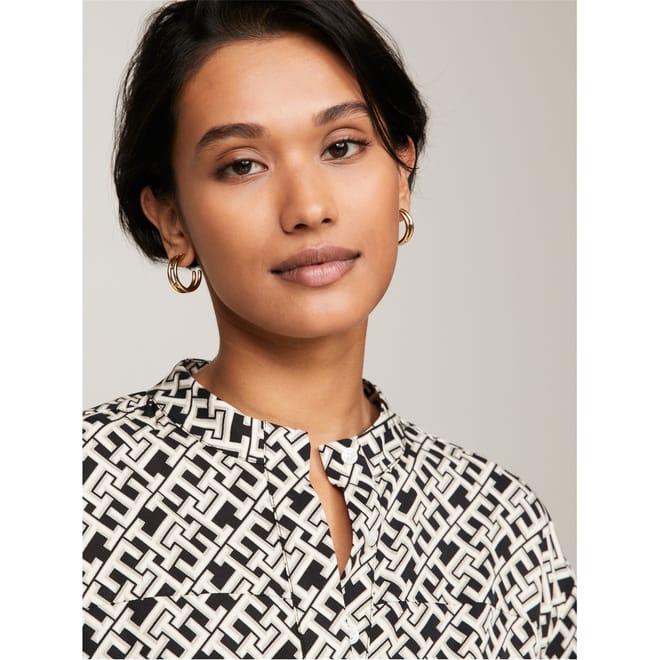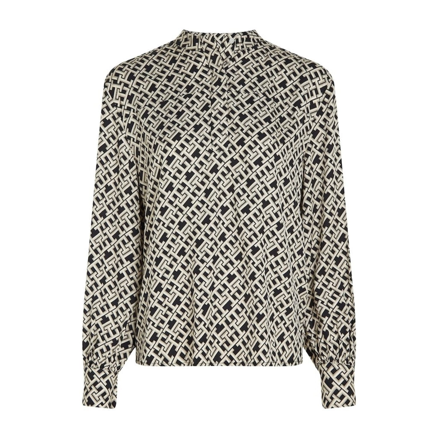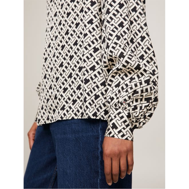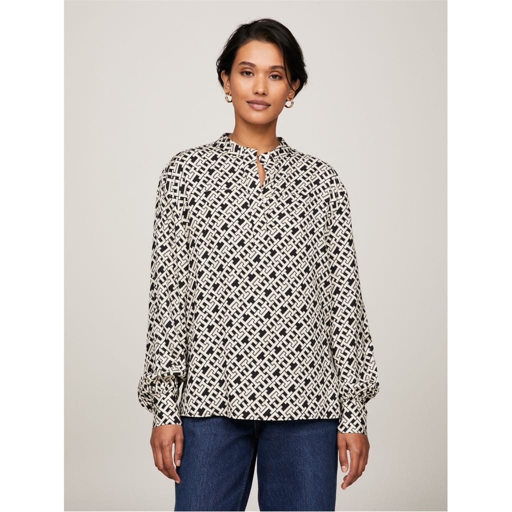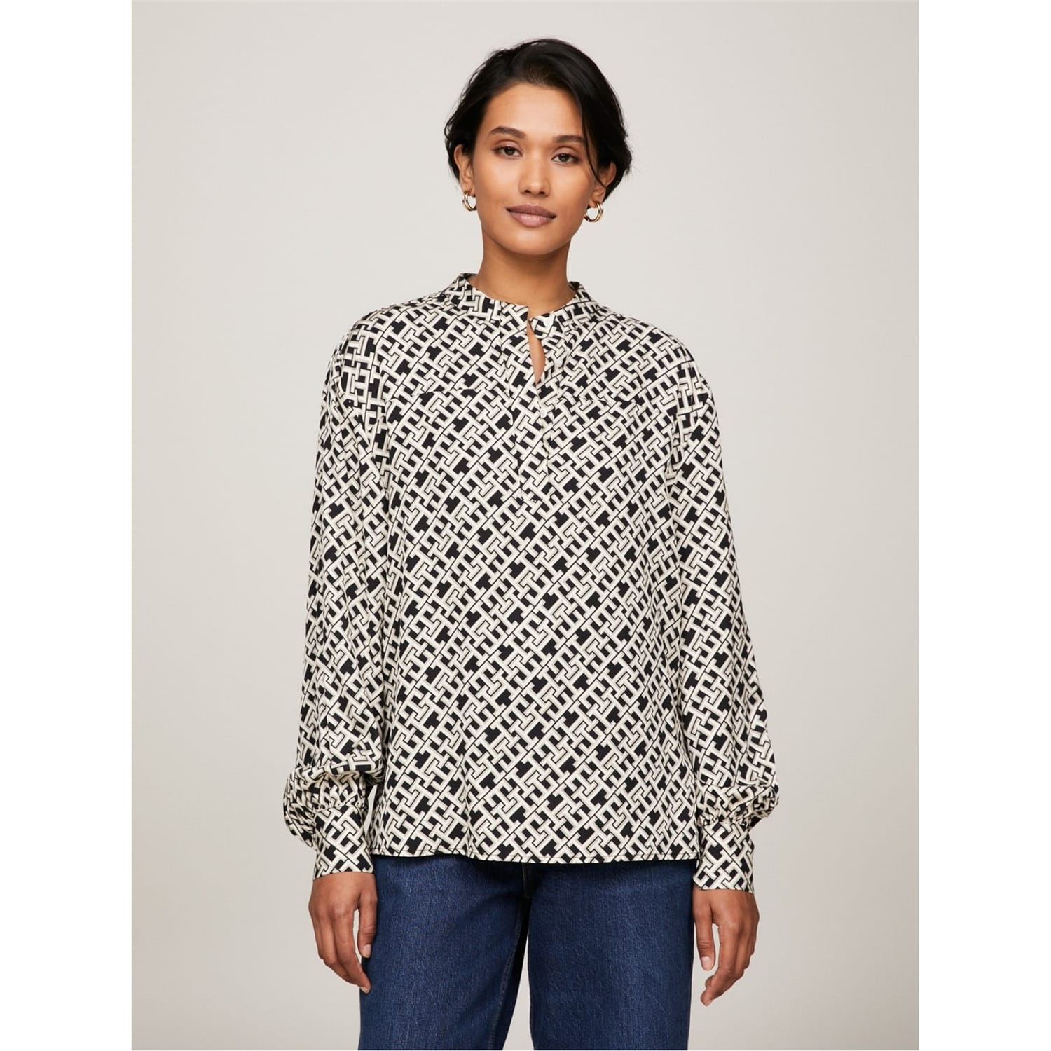 This Tommy Hilfiger blouse is a perfect addition to your wardrobe. Featuring a high neck and long cuff sleeves, it offers a relaxed fit for all-day comfort. The geometric pattern adds a touch of modern style, making it a versatile piece for various occasions. -