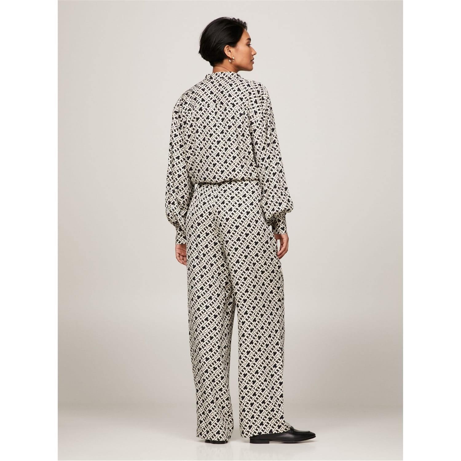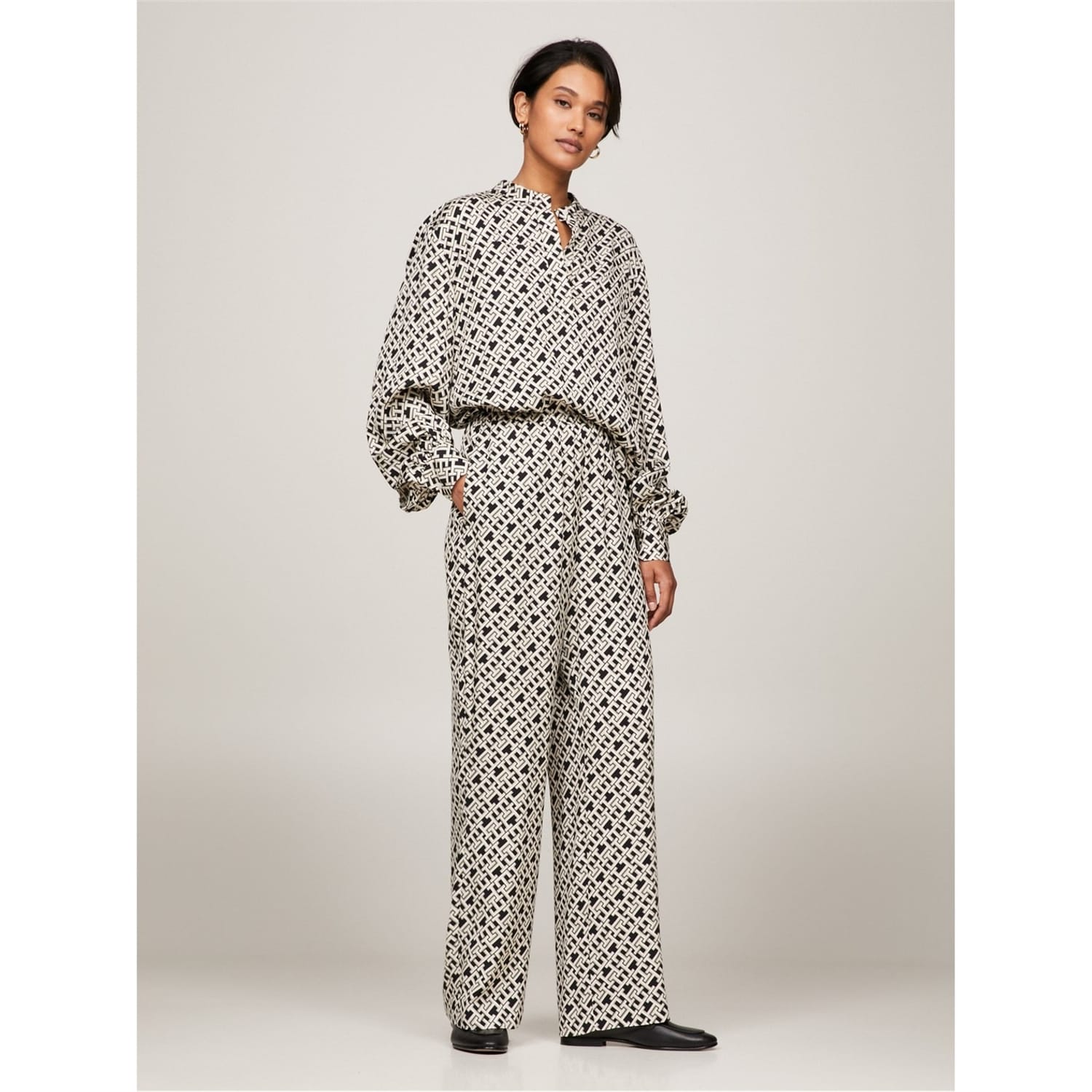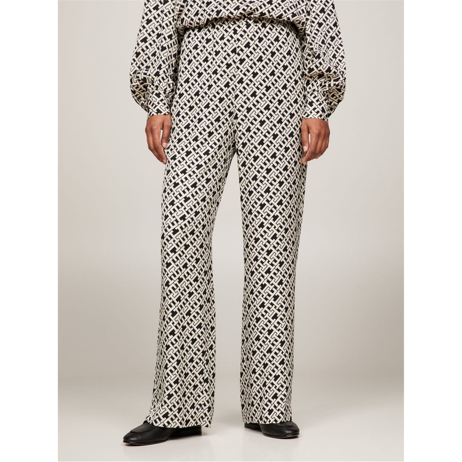 These Tommy Hilfiger casual pants feature a unique geometric pattern, offering a stylish addition to your wardrobe. Perfect for various occasions, these pants combine comfort and trend seamlessly. -