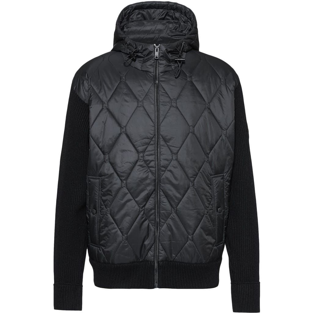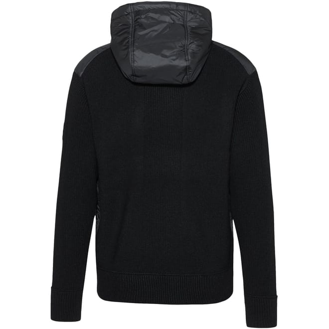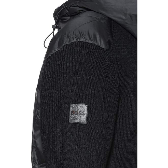 Intertwining timeless style and accessible luxury, the Kaflero Jacket from Hugo Boss is the perfect way to elevate your everyday ensemble. The jacket is designed with a quilted front that offers sophistication, while the knitted back, sleeves and hem provide a delightful contrast. With ribbed detailing on the cuffs and waist, this jacket guarantees a streamlined fit and all-day comfort. The zip fastening ensures easy wearability, complemented by the drawstring hood that provides protection in unpredictable weather. Equipped with two pop-button pockets on the front it adds a functional touch to the design, allowing you to store your essentials with ease. In a solid black colourway, this jacket offers versatility, making it effortless to pair with the rest of your ensemble. To complete the design, the Boss logo patch sits proudly on the sleeve to showcase the brand's meticulous attention to detail and impeccable craftsmanship. Composition: 48% Polyacrylic, 48% Virgin Wool, 3% Polyamide, -