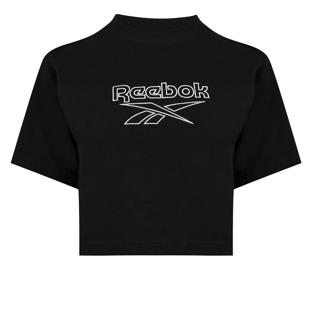 This Reebok t-shirt, perfect for autumn, features a relaxed fit and short sleeves. The solid pattern provides a clean look, while the mock neck adds a touch of style. Embellished with the Reebok logo, this top combines comfort and fashion effortlessly. -